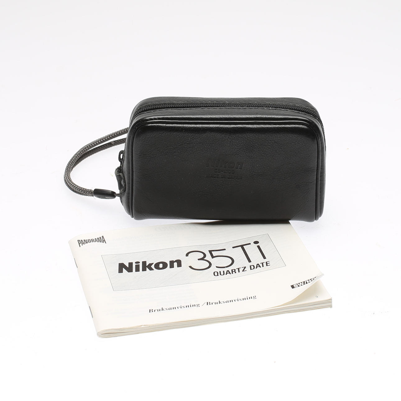 Cámara analógica Nikon 35Ti con estuche y manual.
