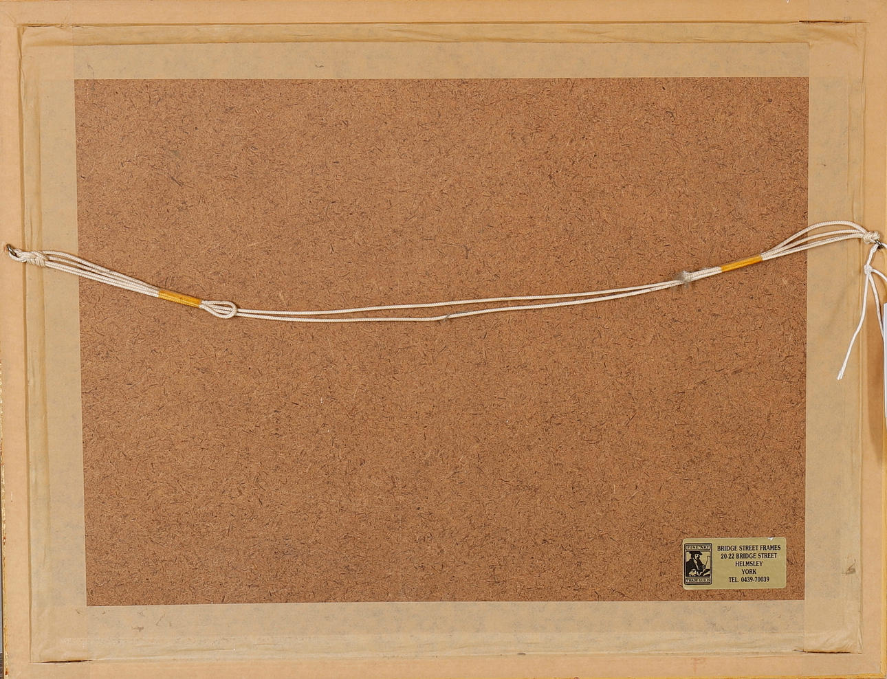 Bajo vidrio, sin examinar fuera del marco vidriado. La hoja es ligeramente ondulada. Por lo demás, parece estar en estado original.