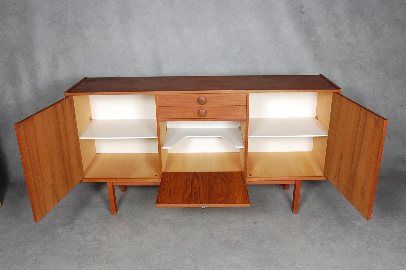 Teca, mueble bar, cajón para cubiertos, largo 170, ancho 42, alto 90 cm.
