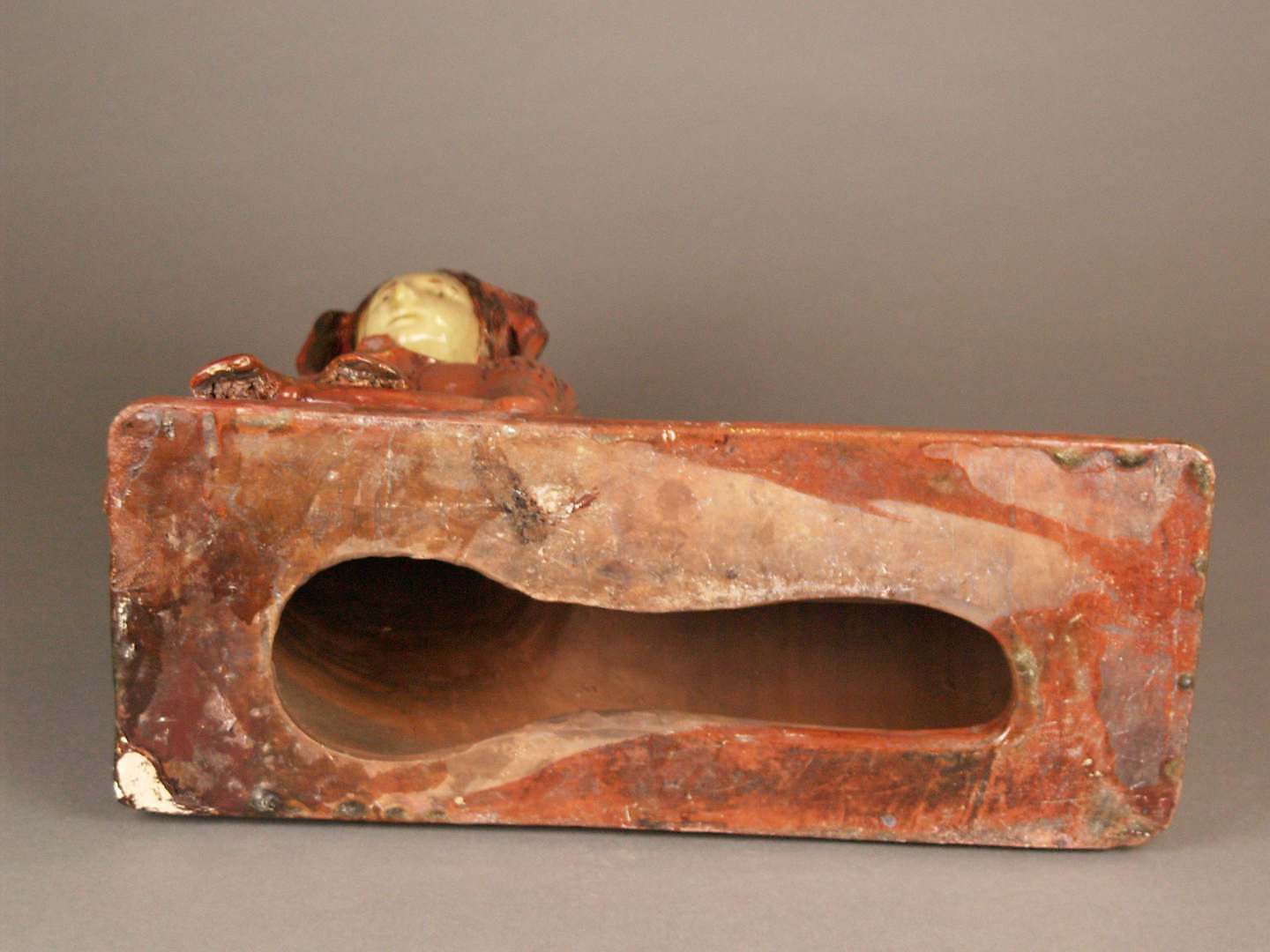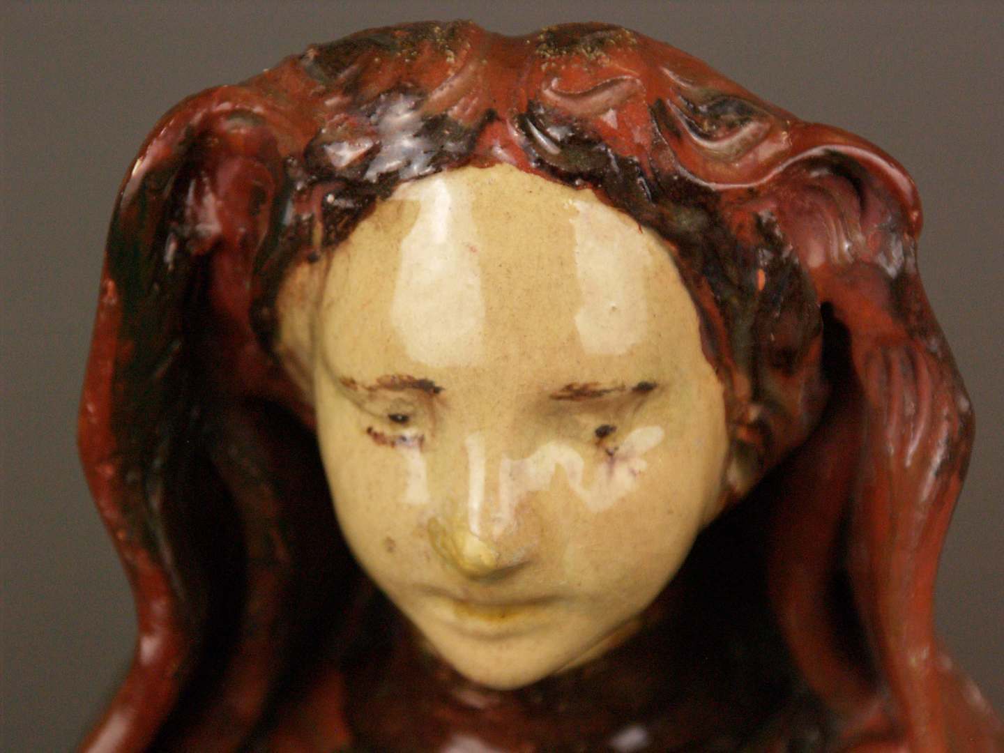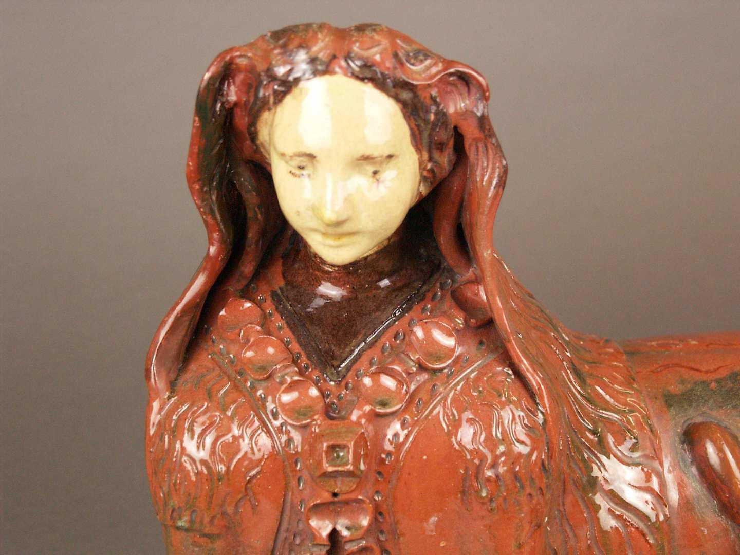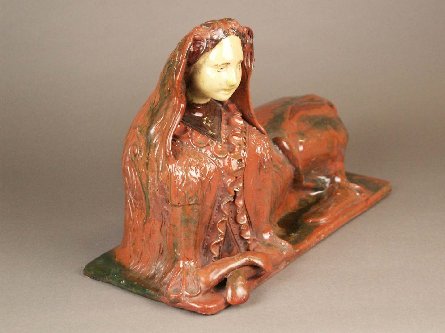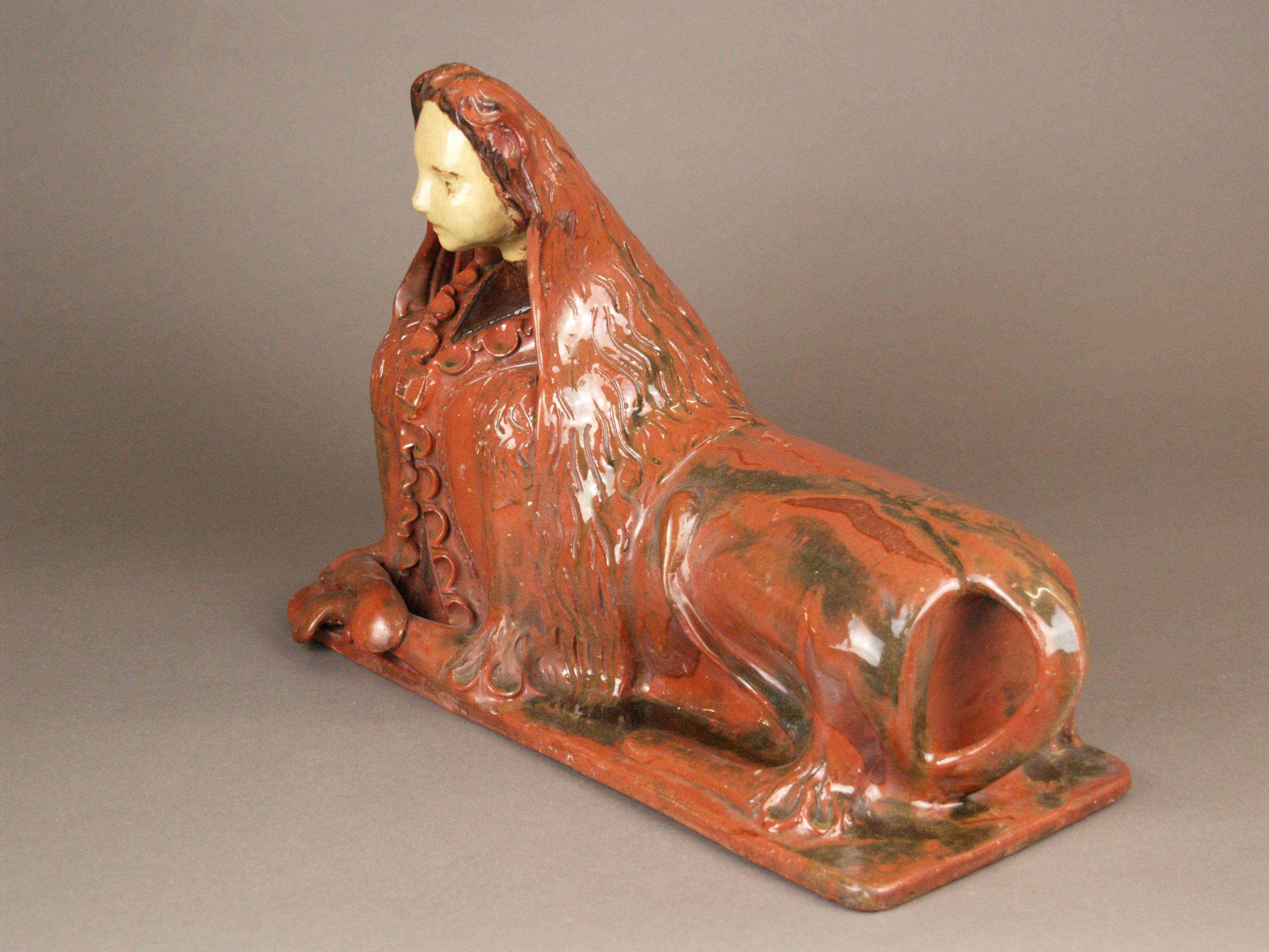 969577. "ESFINGE", figura de cerámica, vidriada, pintada policromada.