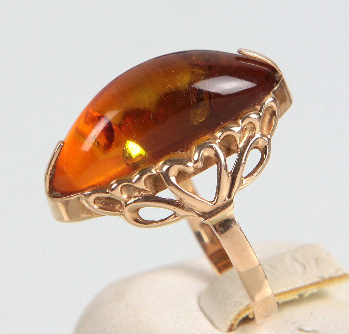 976828. ANILLO ÁMBAR, ORO 583, RUSO.