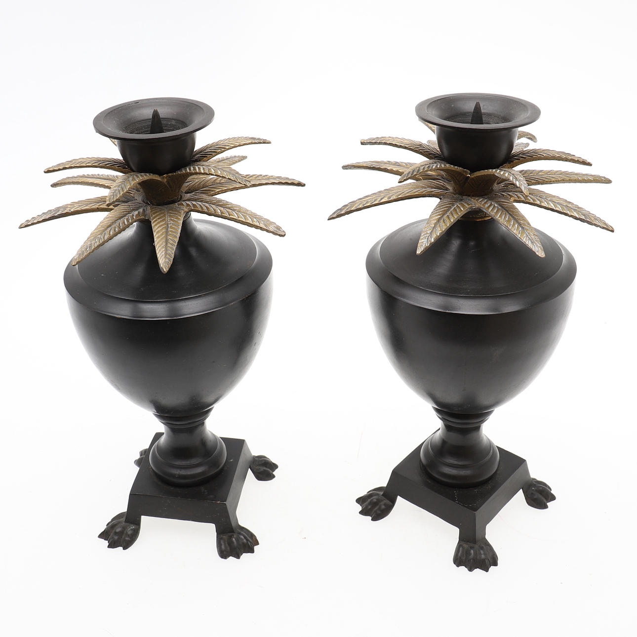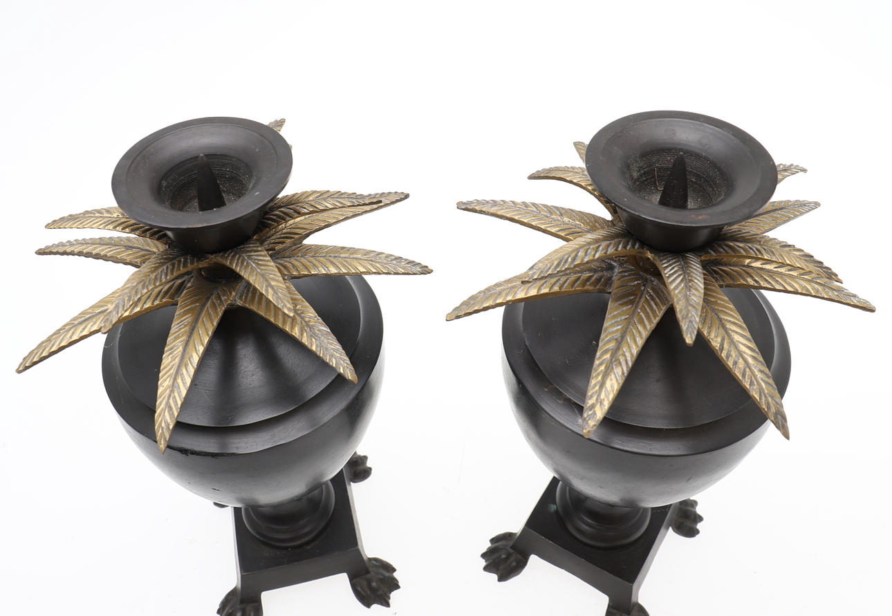 985899. PAREJA DE URNAS DE CANDELABRO DE METAL BRONCEADO.