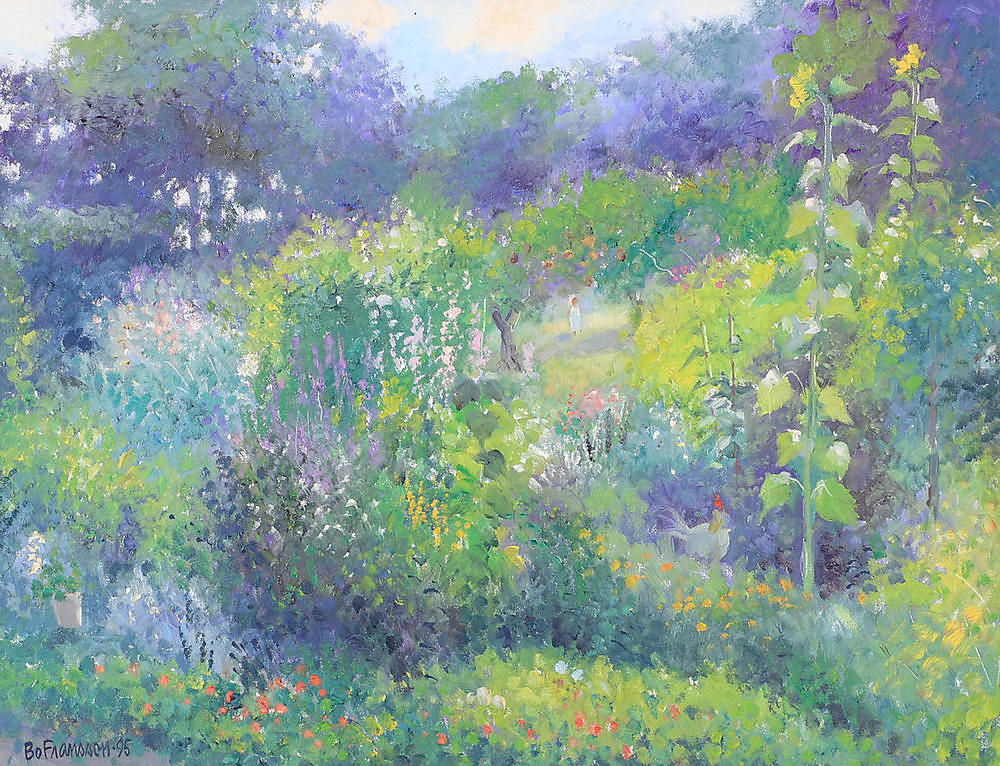 The artist's garden, oil on canvas. Clubbed for 413 GBP at Helsingborgs Auktionskammare.