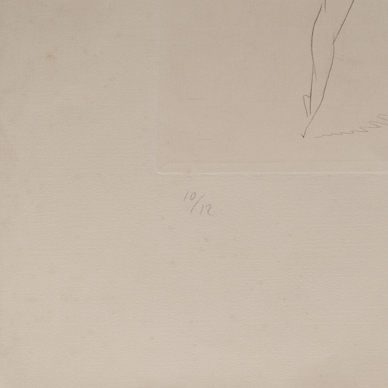 Firmado y fechado en 1928. En el margen inferior, numerado 10/12 y firmado a lápiz. Esta es la segunda estampa que se conoce del único tiraje de esta plancha, realizado en vida del escultor. La plancha se conserva en el Museo Gargallo de Zaragoza
