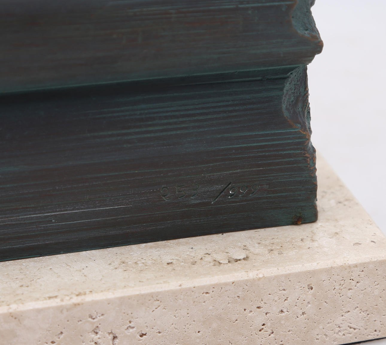 Firmada y numerada 253/999. Base en travertino. Adjunta certificado de autenticidad firmado por el artista y fechado en Barcelona el 24 de noviembre de 2004