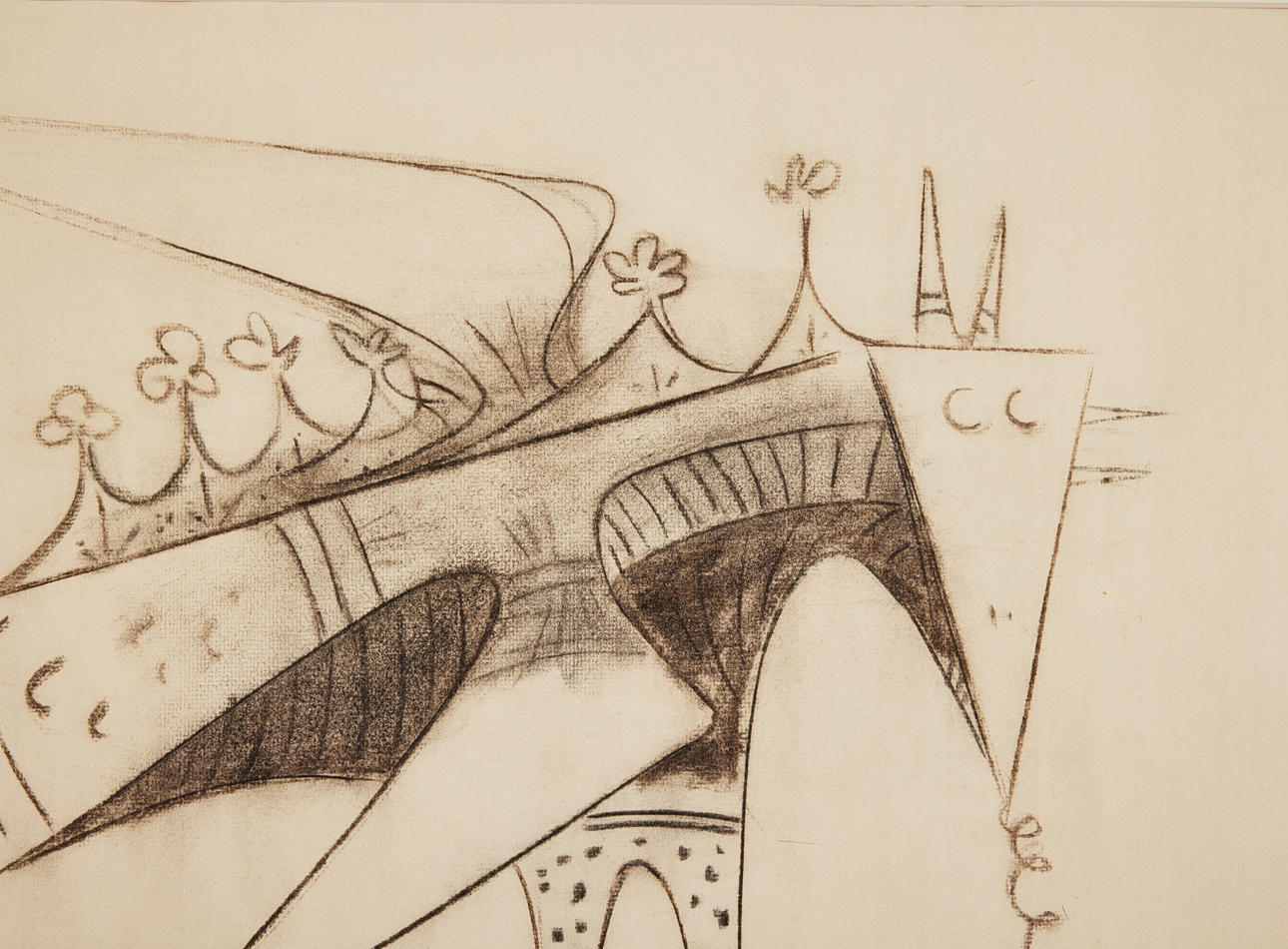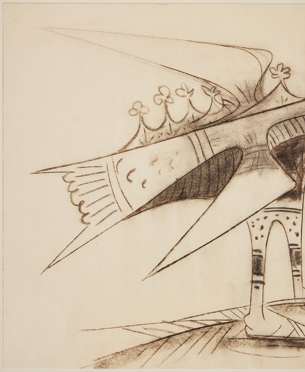 Tiza pastel sobre papel, tamaño de la imagen 46 x 60 cm. Firmado y fechado Wifredo Lam Lund Sept 1955.