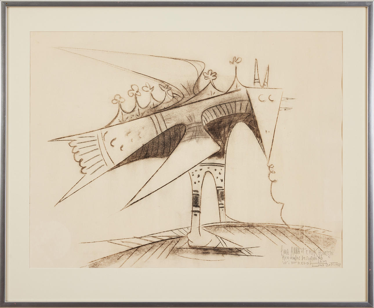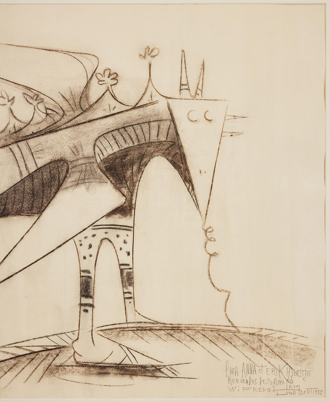 Dedicatoria: Para Anna et Erik Hjortsjö Recuerdos de su Amiro Wifredo Lam Lund, septiembre de 1955.