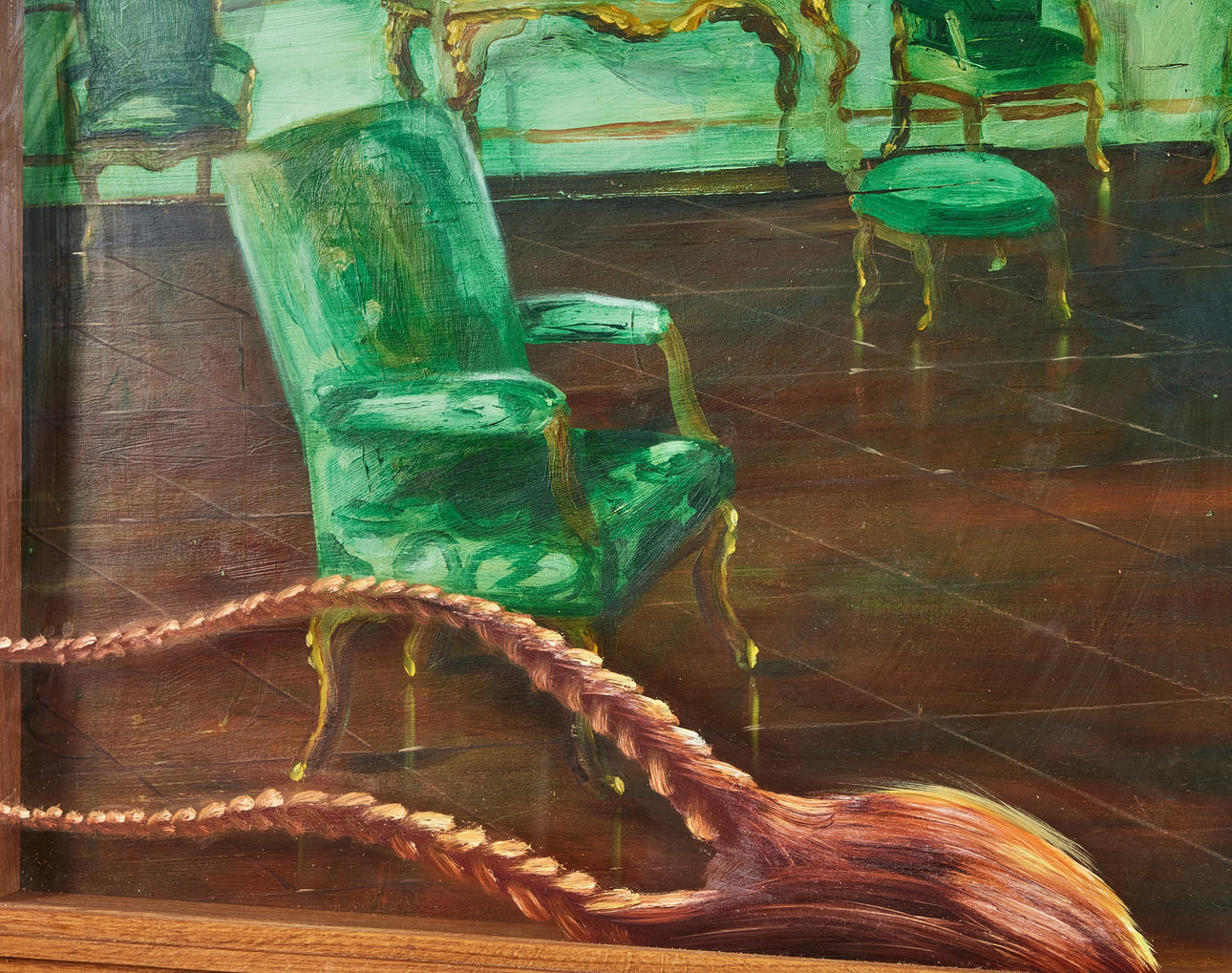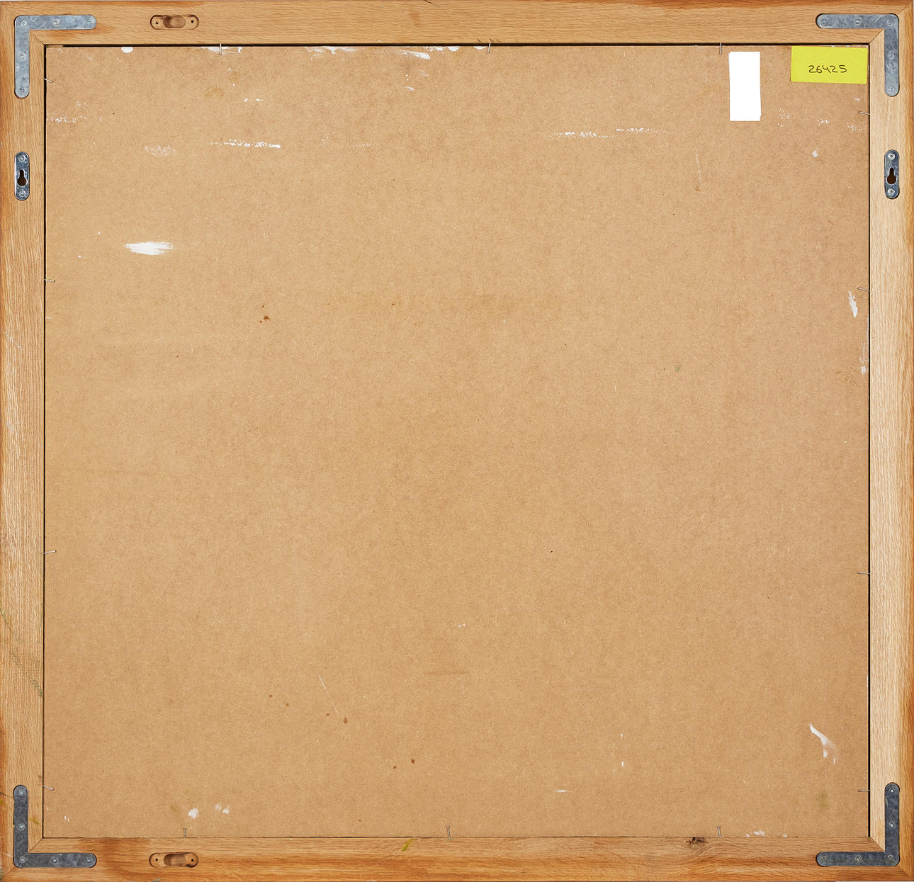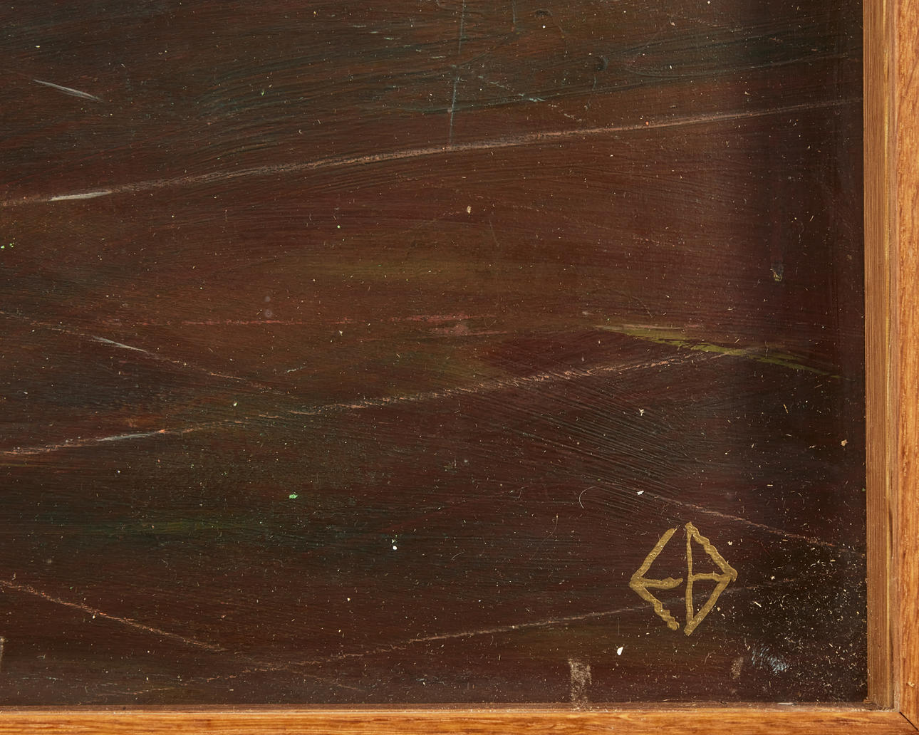 Óleo sobre tabla y cristal en marco diseñado por el artista, 118 x 122 cm. Monograma firmado EB.