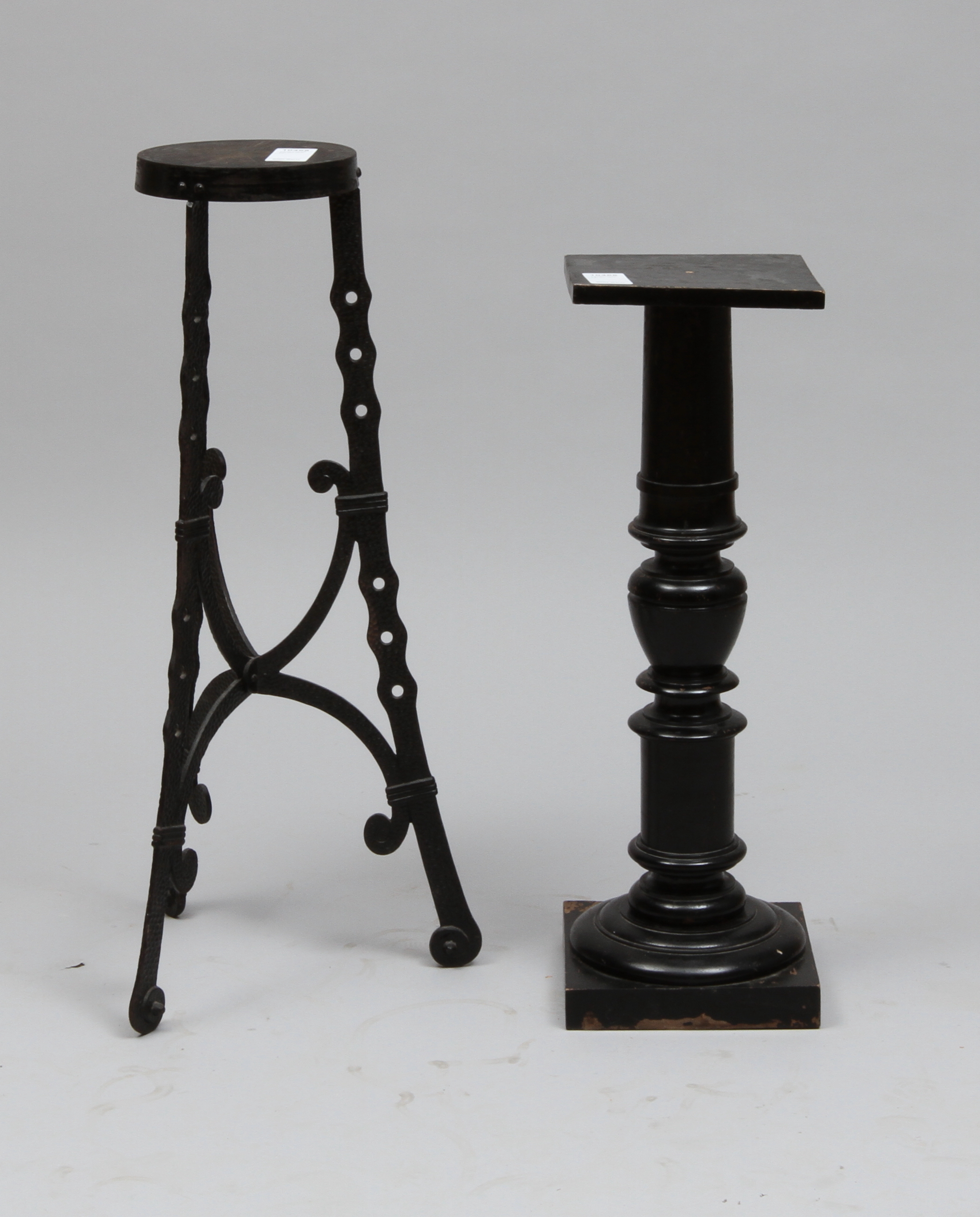 10468. PIEDESTALER, 2 kpl, rautaa ja puuta.