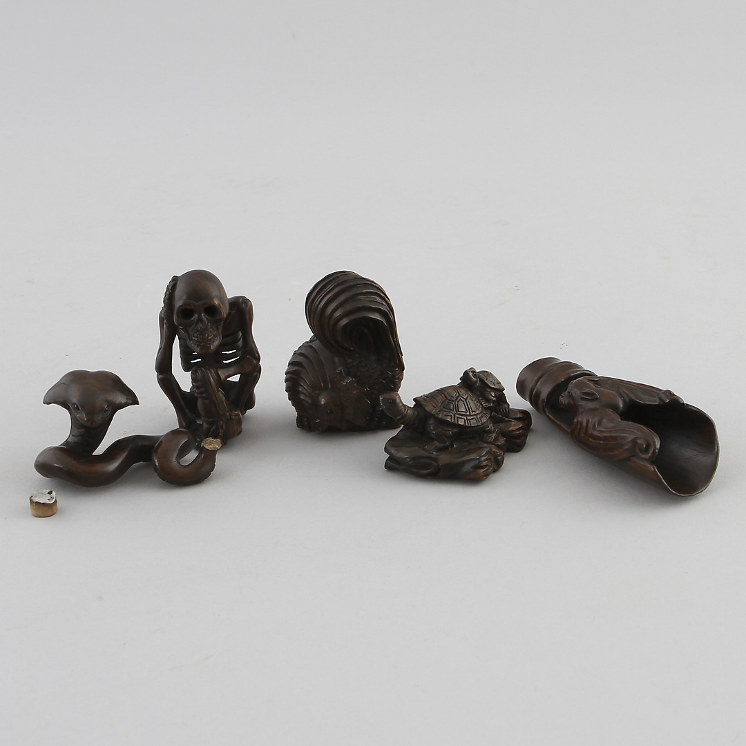 105245. NETSUKE, 5 kpl, Japani, kyltti.