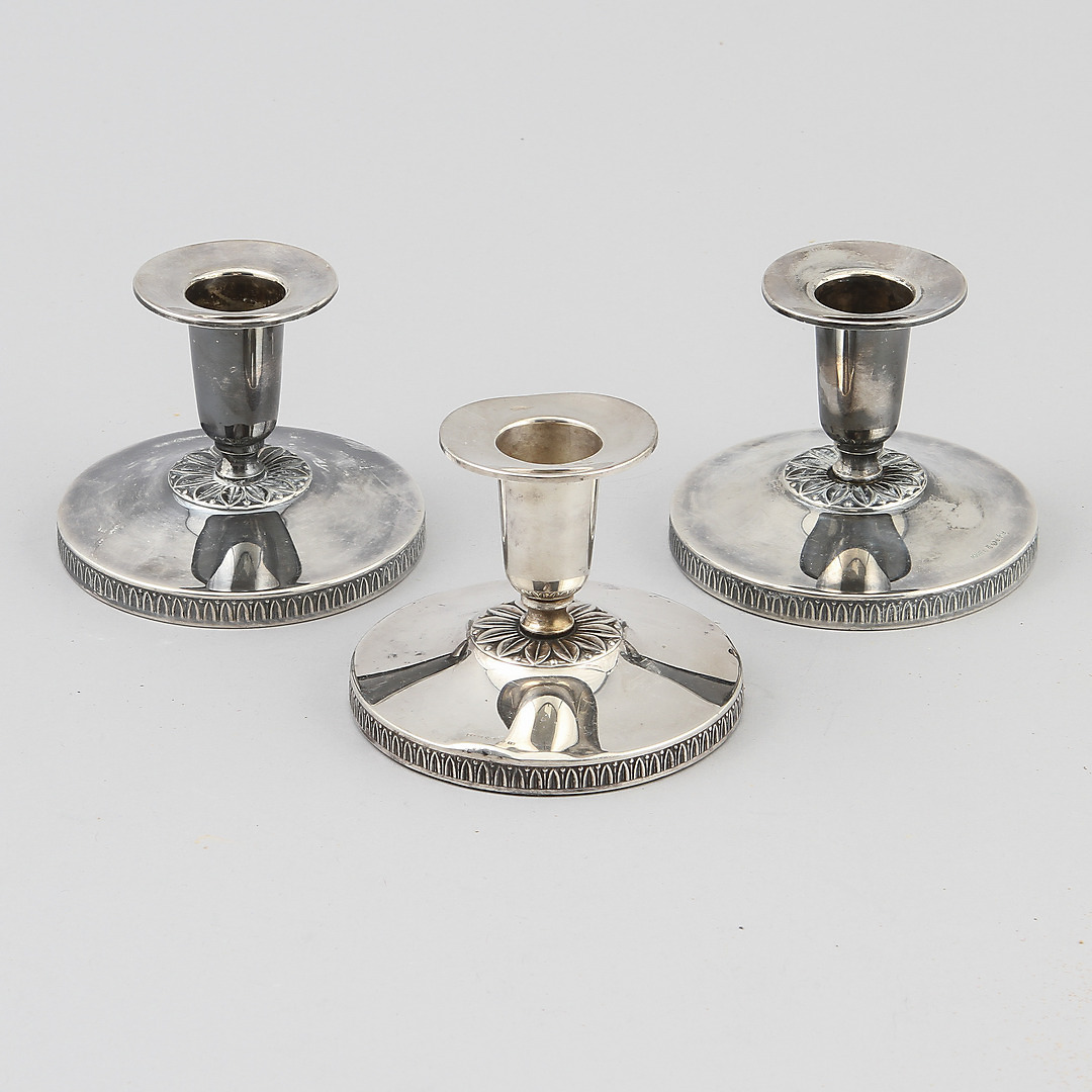 107273. KYNTTILÄT, 3 kpl, hopea, Göteborg 50/60s.