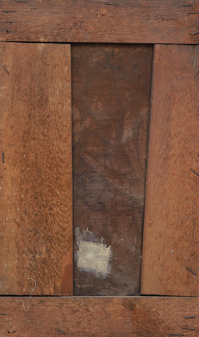 Ilman kehystä, naulattu runkoon. Kunnostukset ja vauriot.