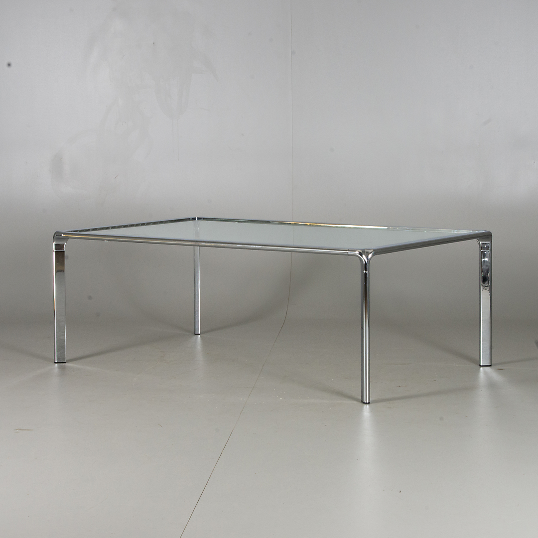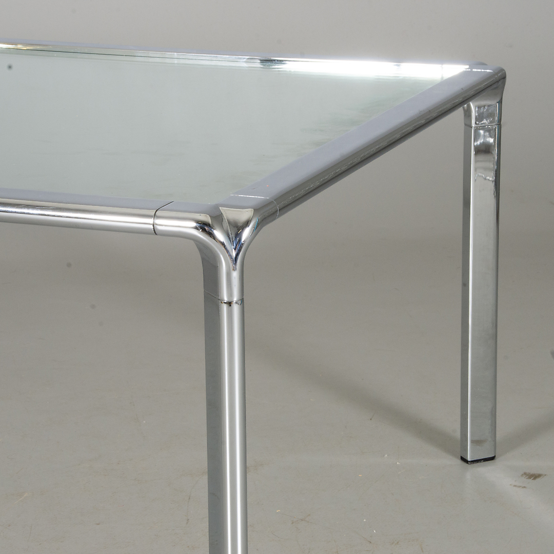 1107070. SOHVIPÖYTÄ, kromi/lasi, 1900/2000s.