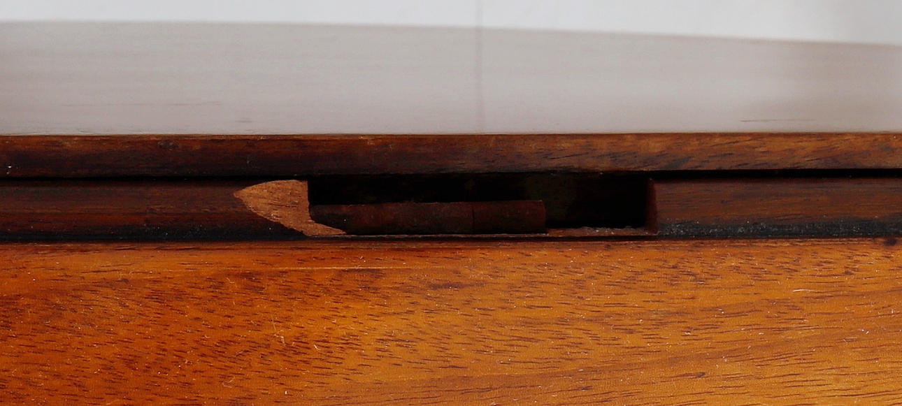 Jäljet, kolhut, naarmut ja naarmut vastaavat ikää ja käyttöä, yksi lehti hieman väärän muotoinen ja luultavasti pienentynyt tai muutettu jossain vaiheessa, joitakin vanhoja ja täytettyjä puumadon reikiä, vanhoja halkeamia, lastuja ja häviöitä varsinkin yhden lehden saranan lähellä .