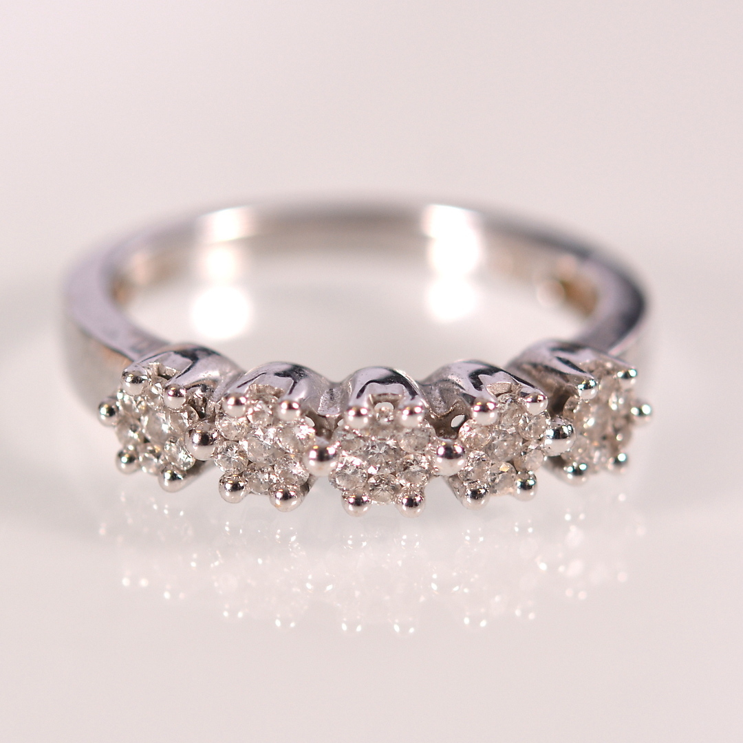 1131389. TIMANTTISORMUS, valkokulta, 18K.