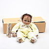 Nukke vaatteineen alkuperäisessä laatikossa, todistuksella. Pituus 45 cm.