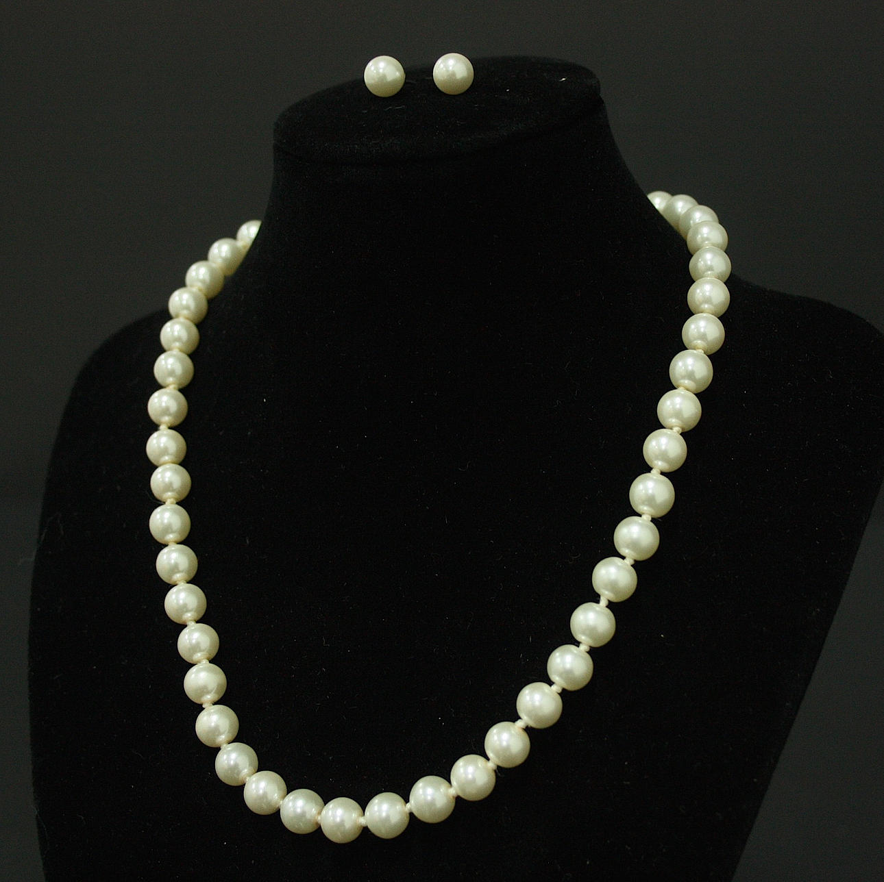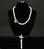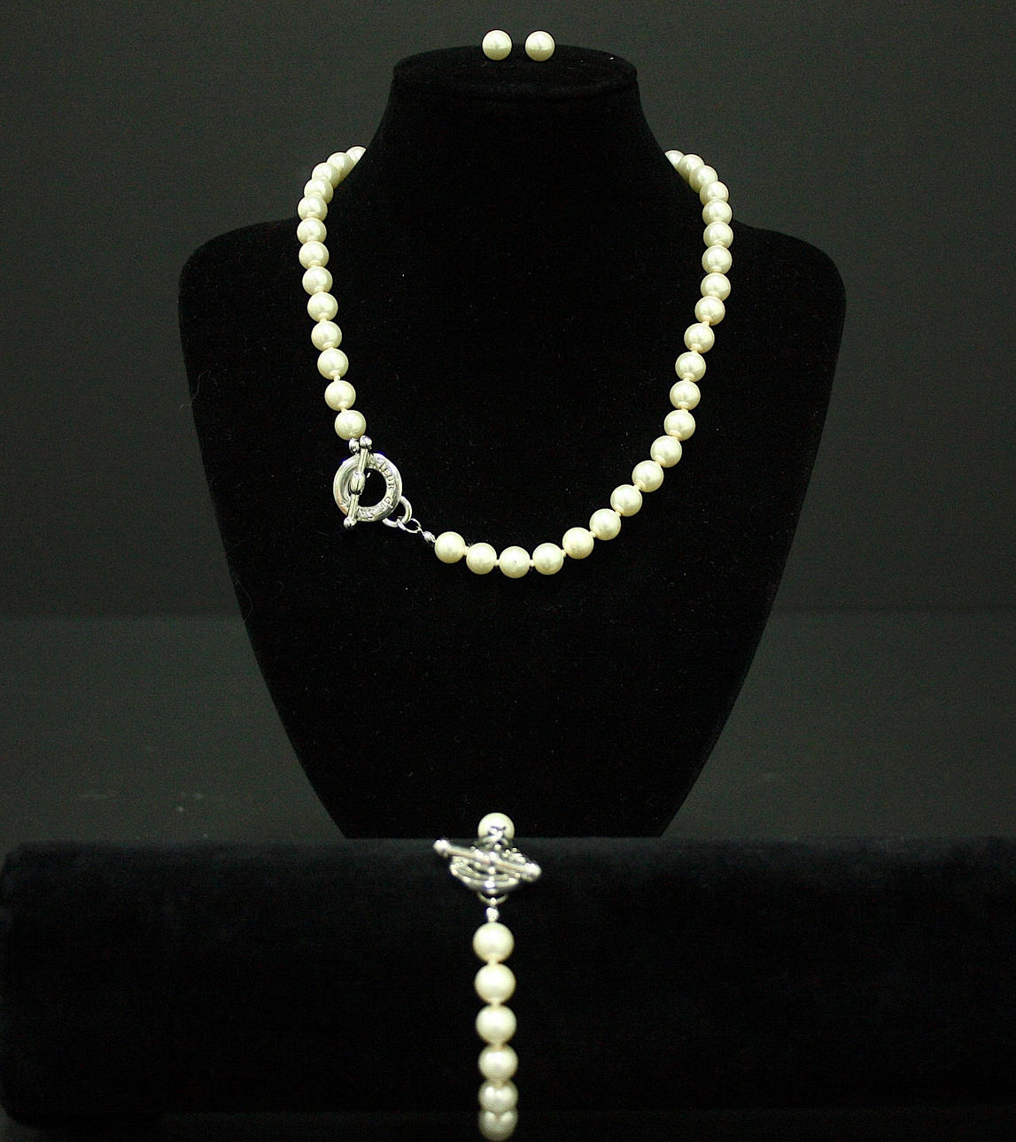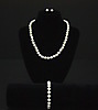 Rannekoru, pituus 21 cm, merkintä Snö of Sweden Kaulakoru, pituus 43 cm, merkintä Snö of Sweden Korvakorut, yksi pari, pituus 2 cm merkitsemätön.