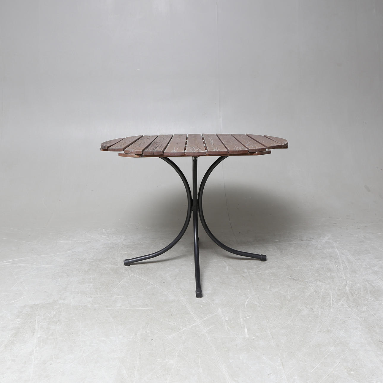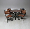 Tuolit, 4 kpl. Pöytä, halkaisija n. 102, korkeus 72 cm.