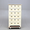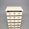 Maalattu. Messinkiliittimet. Kuusi laatikkoa. Pituus 87. Leveys 51. Korkeus 142 cm.
