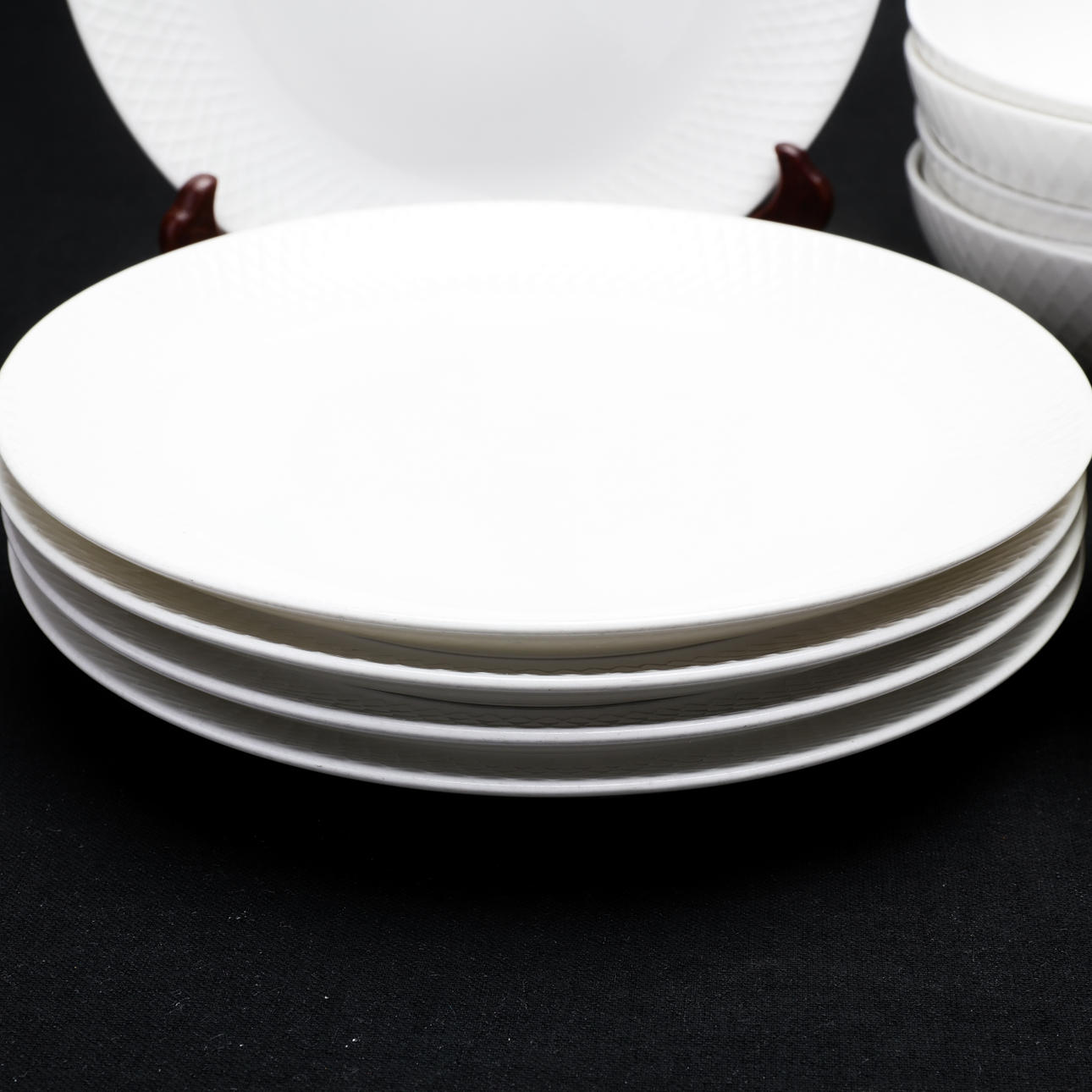 5 lautasta n. ø 22 cm 6 syvää lautasta n. ø 17,5 cm.