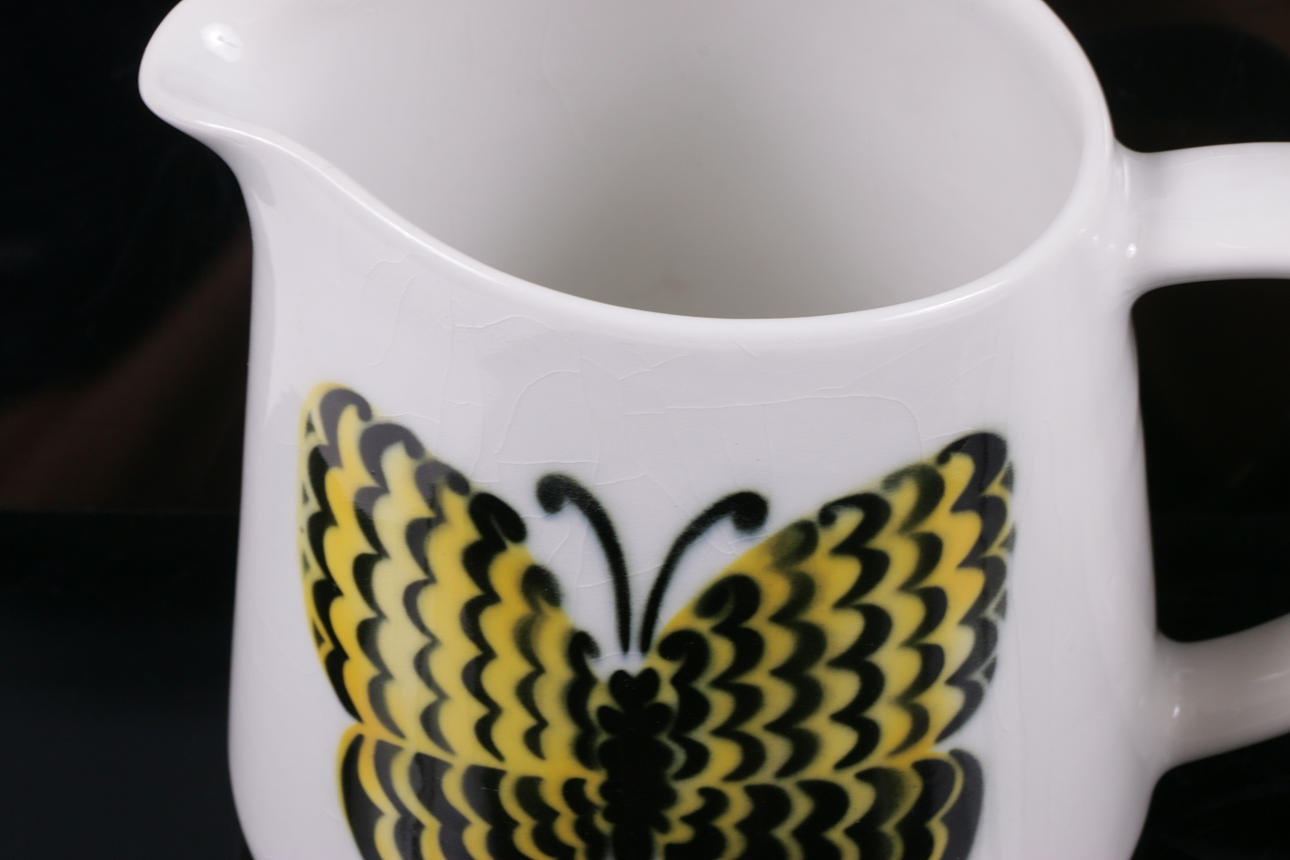Toimittaja Gustavsberg koristeellisella roiskeella ja tummilla pisteillä.