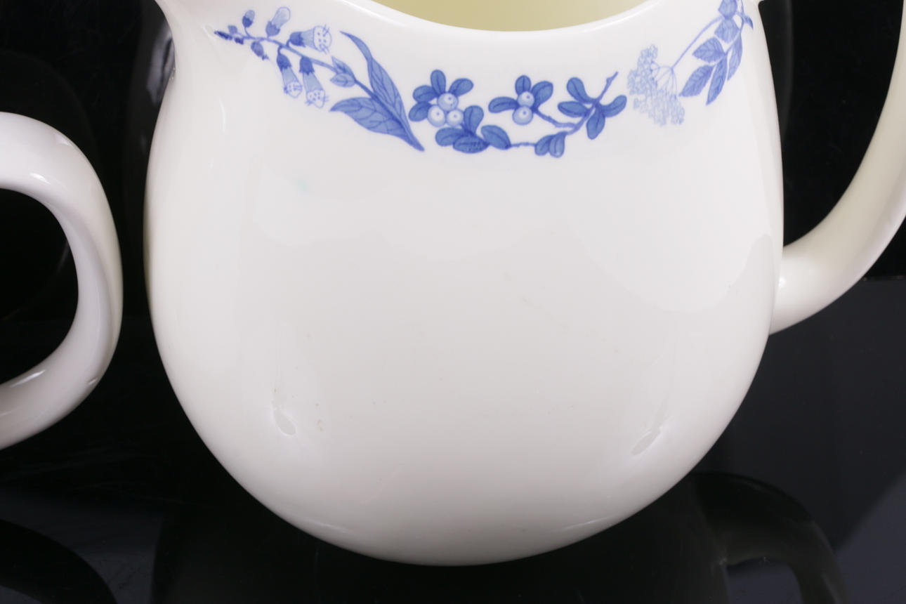 Korkeus 14,3 cm Bringeri, luuposliini, sini kukkakoristelu, Gustavsberg Korkeus n.: 18,5 cm.