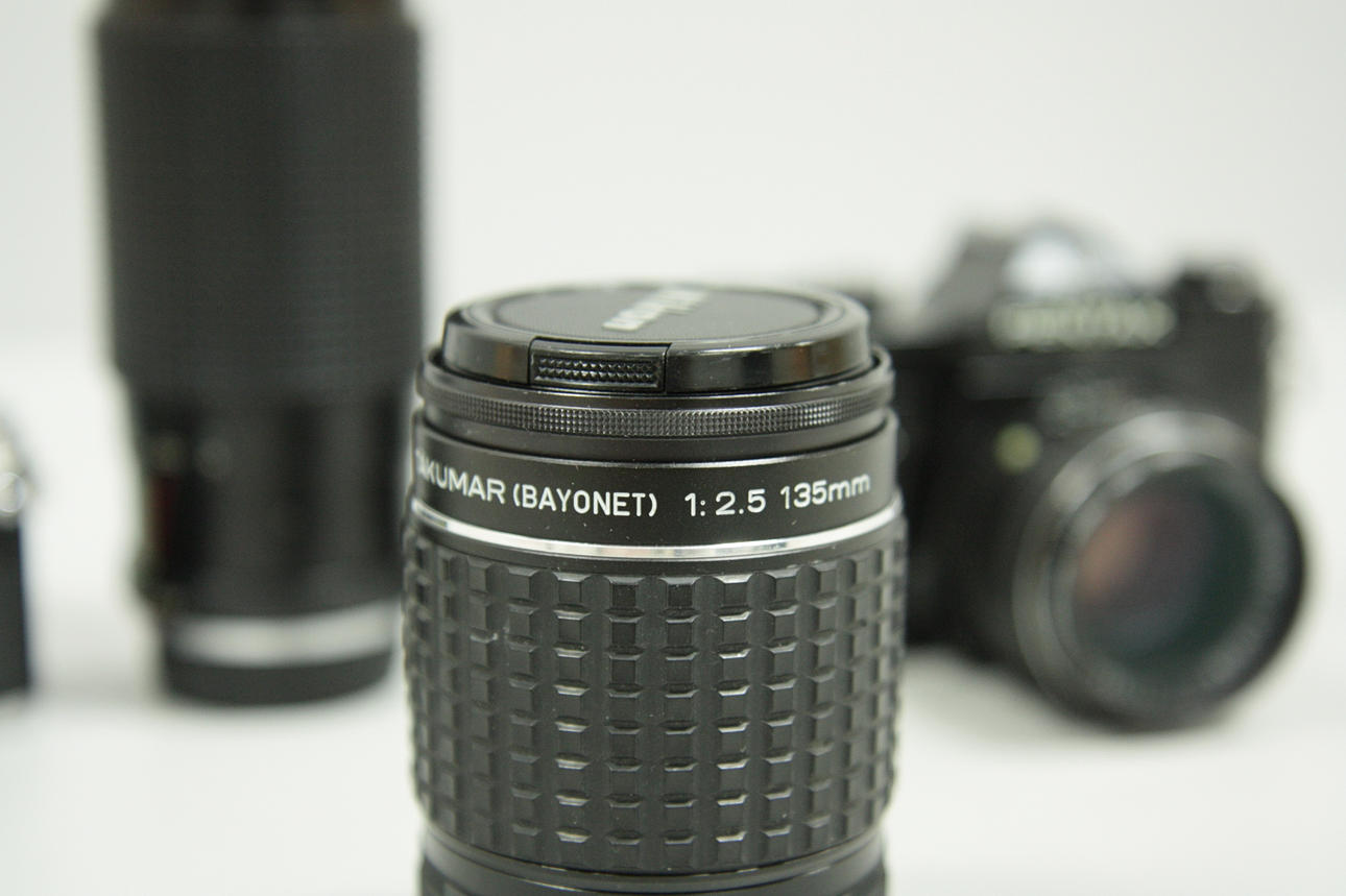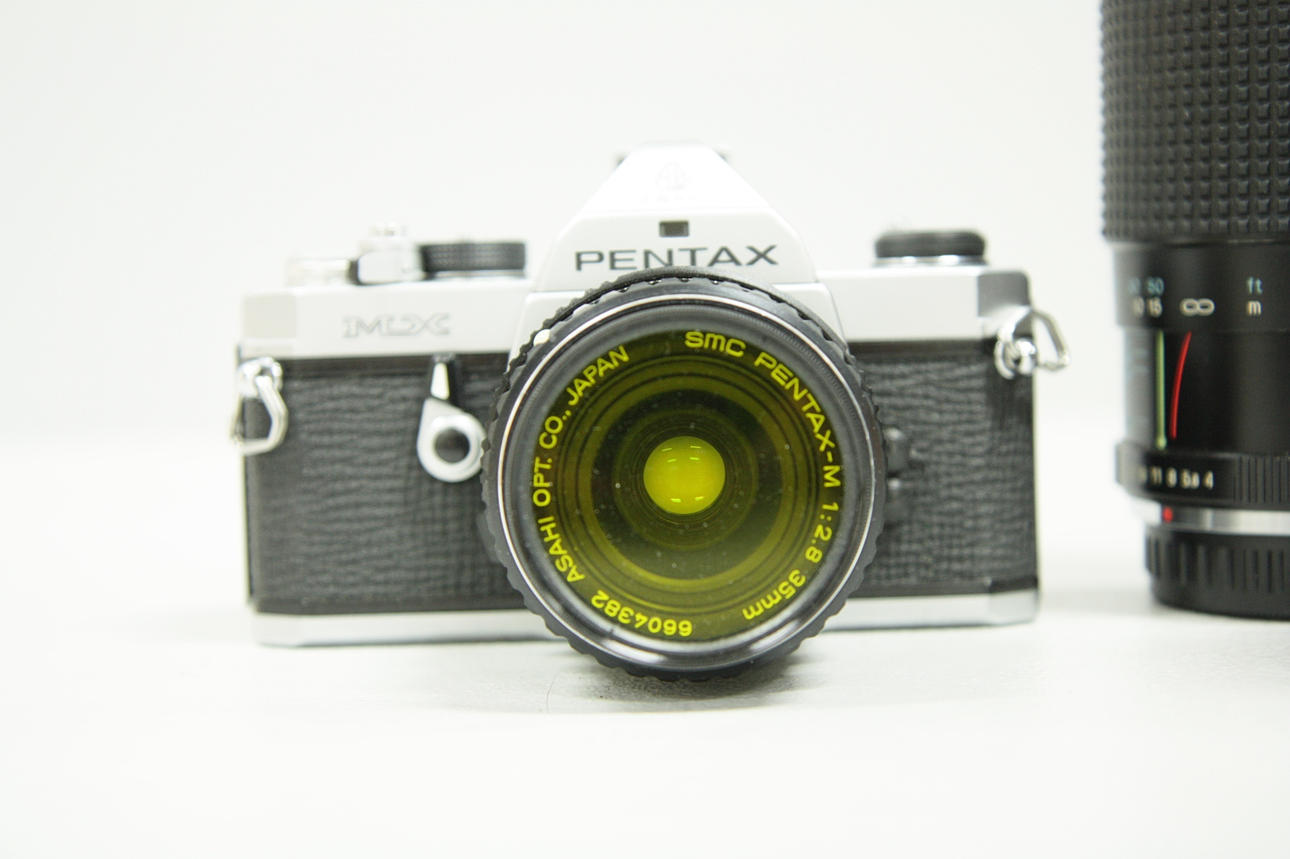 Pentax KX, optiikka asahi opt co, 1,8/55 mm Pentax MX, optiikka smc Pentax-m 2,8/35 mm Optiikka Pentax 2,5/135 mm Optiikka Tokina Pentax kiinnitys 8-200 mm, 1,4 Käyttöohje Pentax Asahi "linssille" mukana.