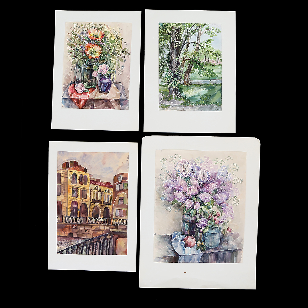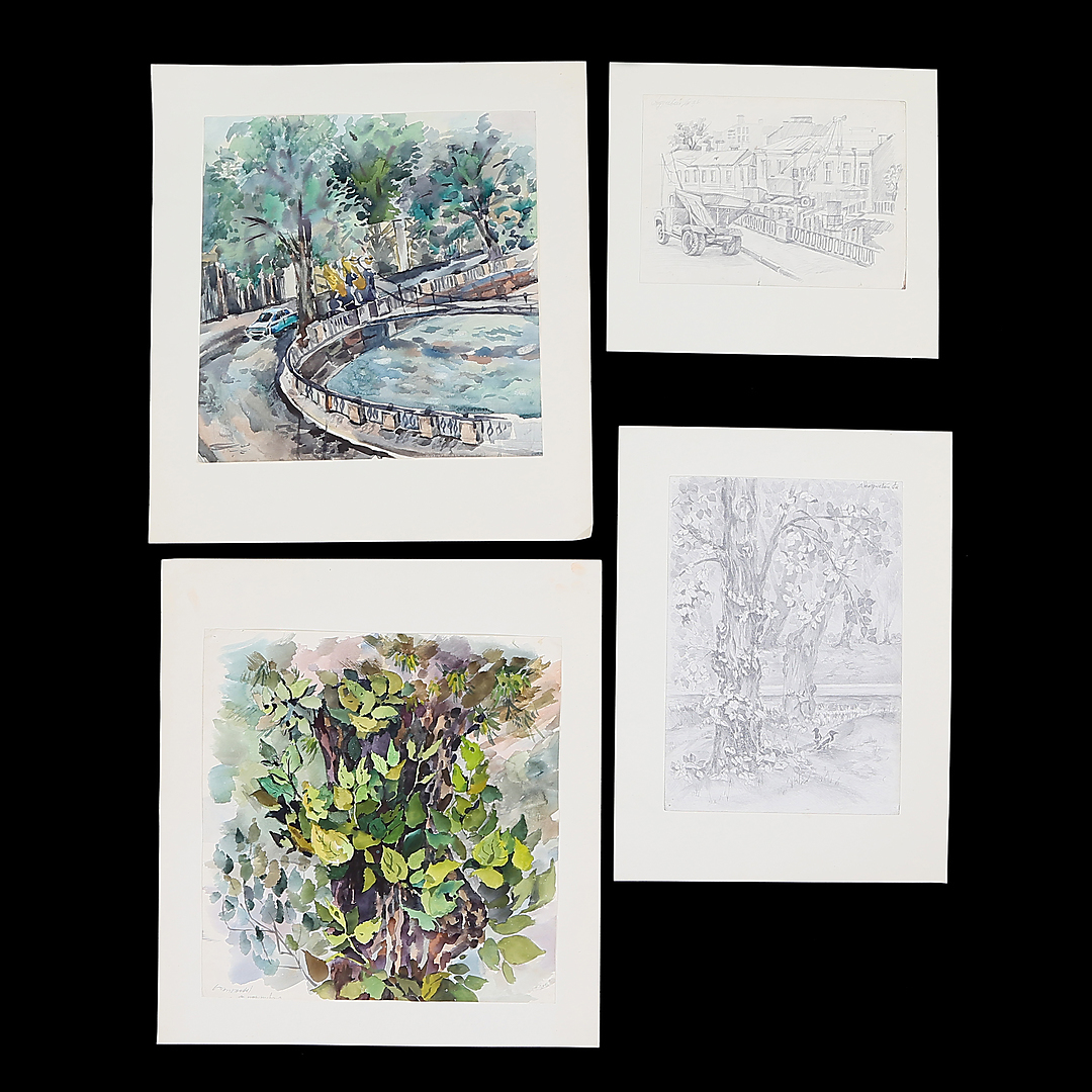 1246150. OIDENTIFIERAD KONSTNÄR. PIIRUSTUKSET ja juliste, 14 osaa, luultavasti Neuvostoliiton, signeerattu, 1900-luku.