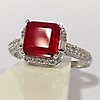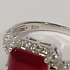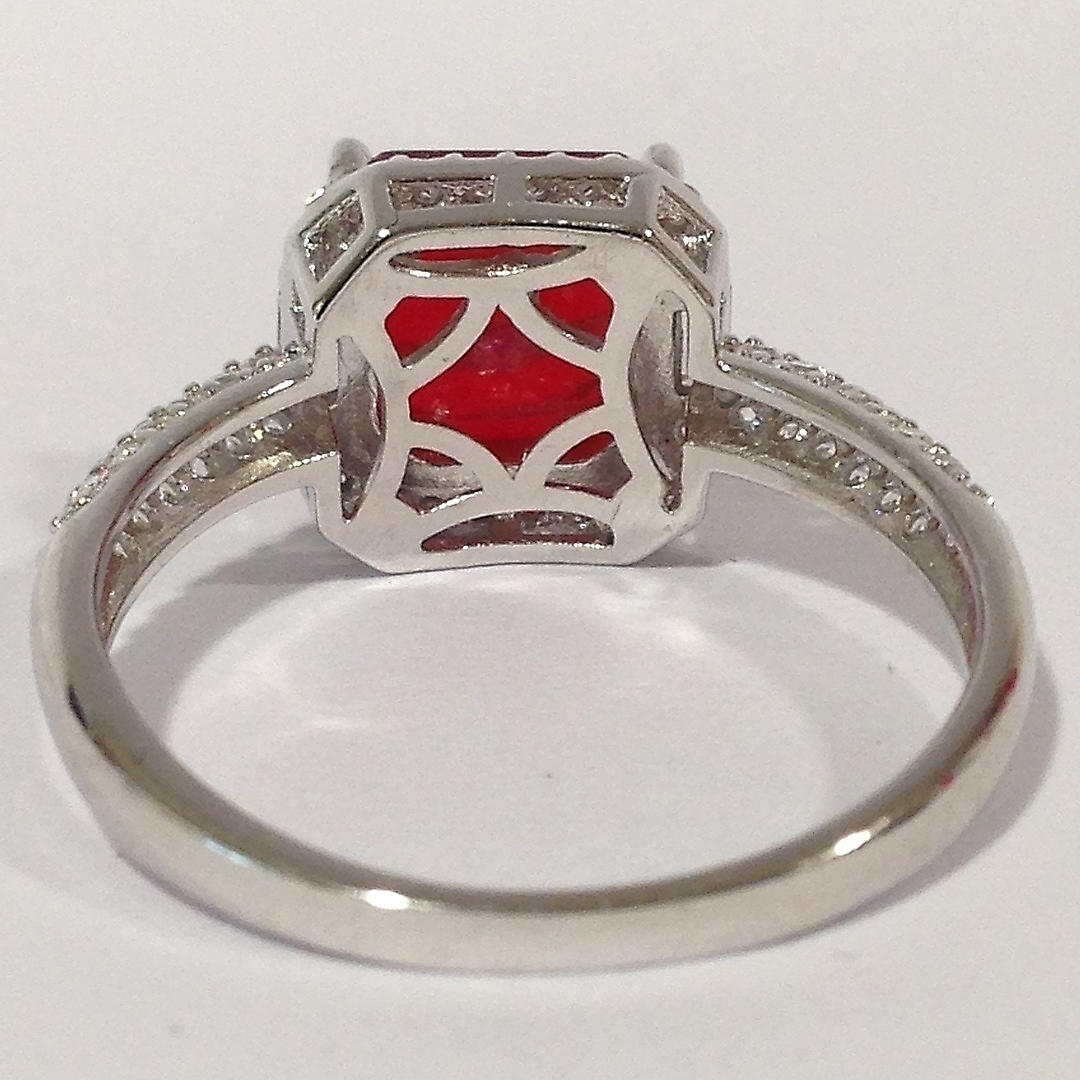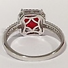 Tämä sormus on asetettu neliön keskelle leikatun punaisen kuution zirkoniumkiven kanssa, joka on asetettu nelikynsiseen kiinnitykseen.