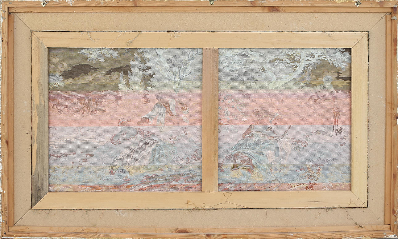 1258367. TEKSTIILIMAALAUS kultakehyksellä, 1900-luku.