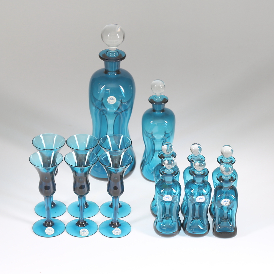 130108. CLOCK PULLOT ja SNAPSHOT, lasi, 14 osaa, Holmegaard.