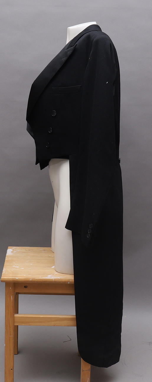 Takki, pituus n. 122 cm, vyötärönympärys n. 83 cm, sisähihan pituus n. 49 cm.