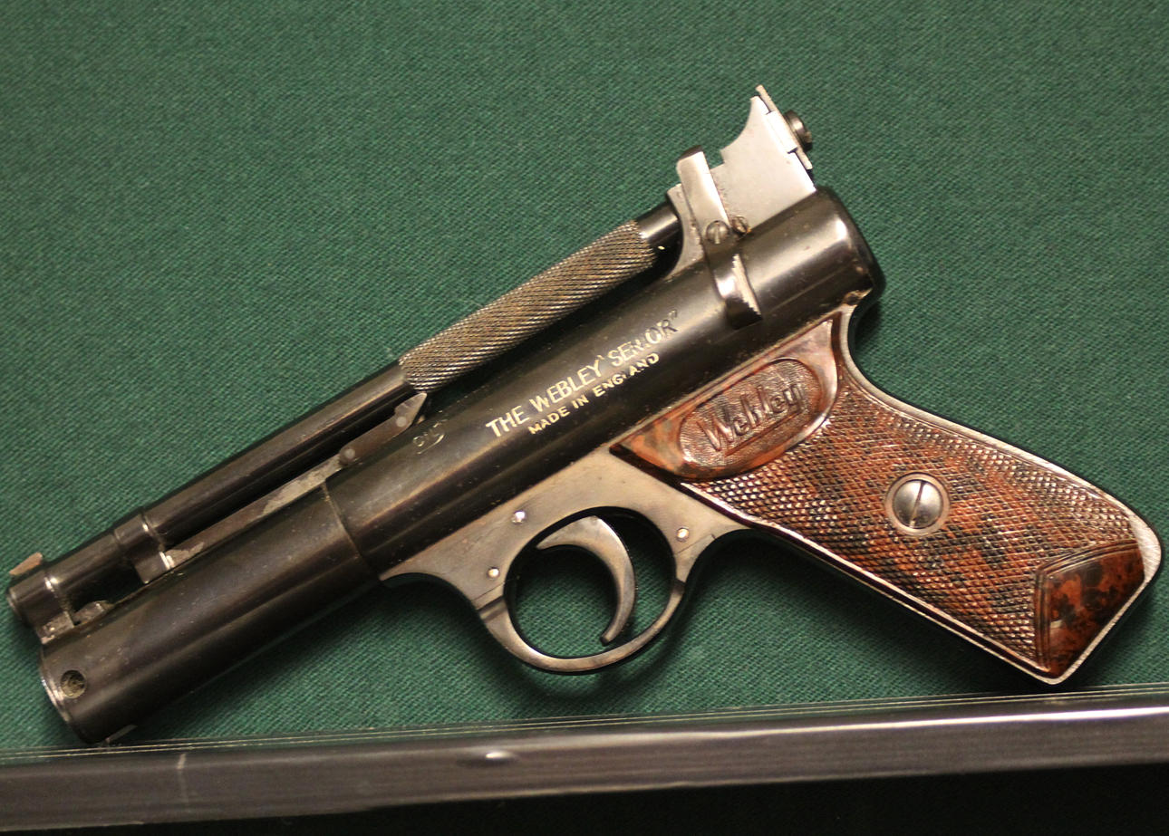 Ilmapistooli englantilainen Mark Webley&scott Mod "Senior", kahvapinnat bakeliittia.