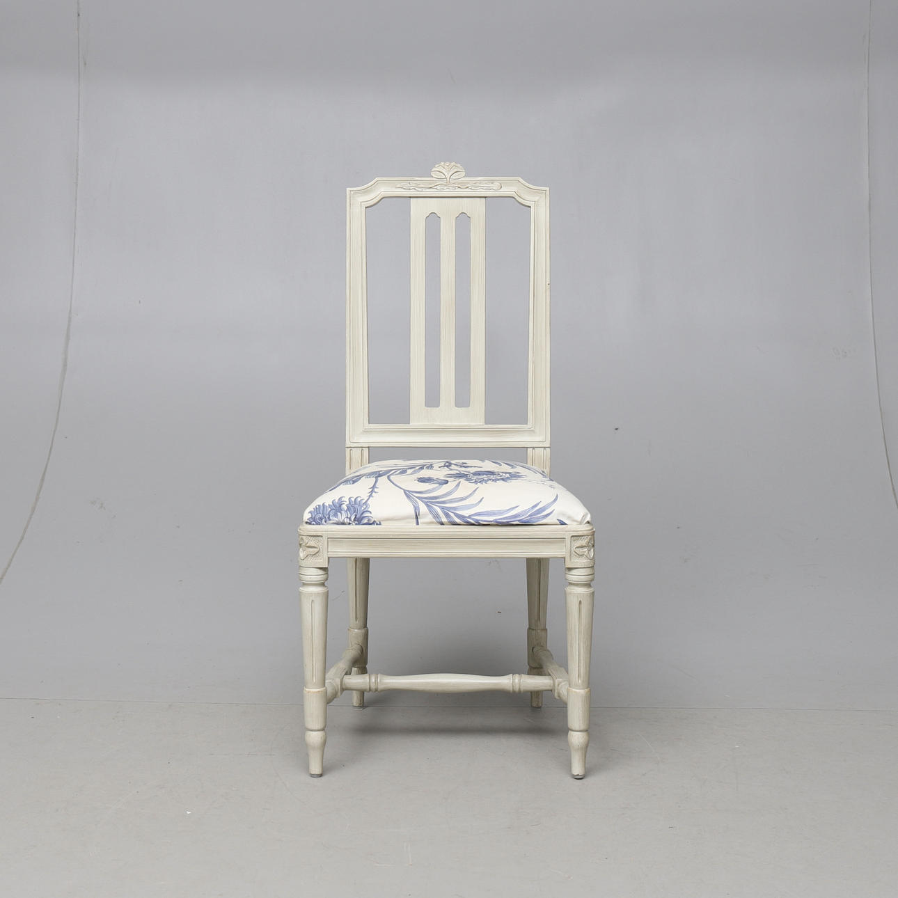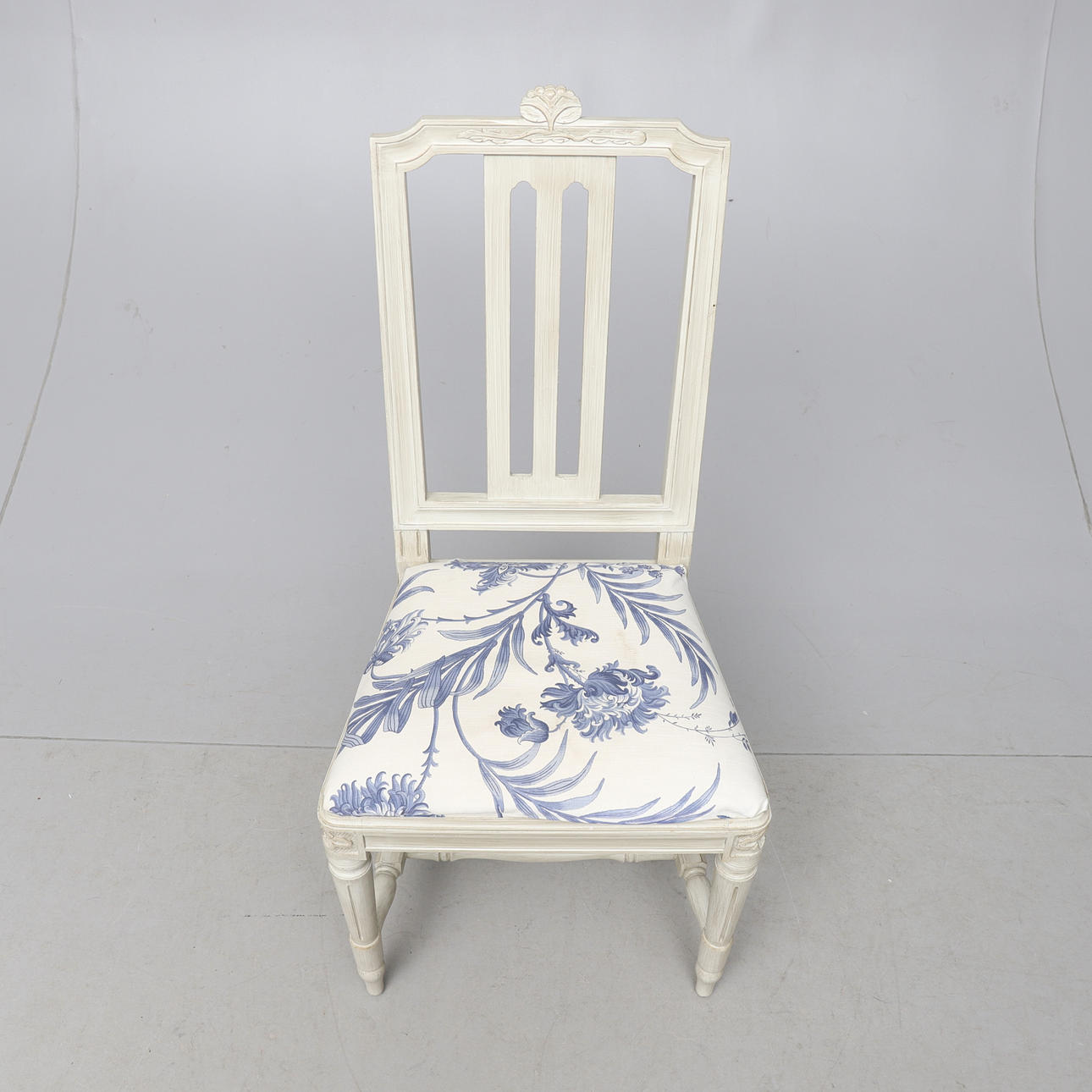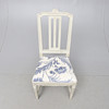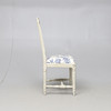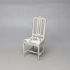 Maalattu. Veistetty sisustus. Löysä pehmustettu istuin. Lokero merkitty.