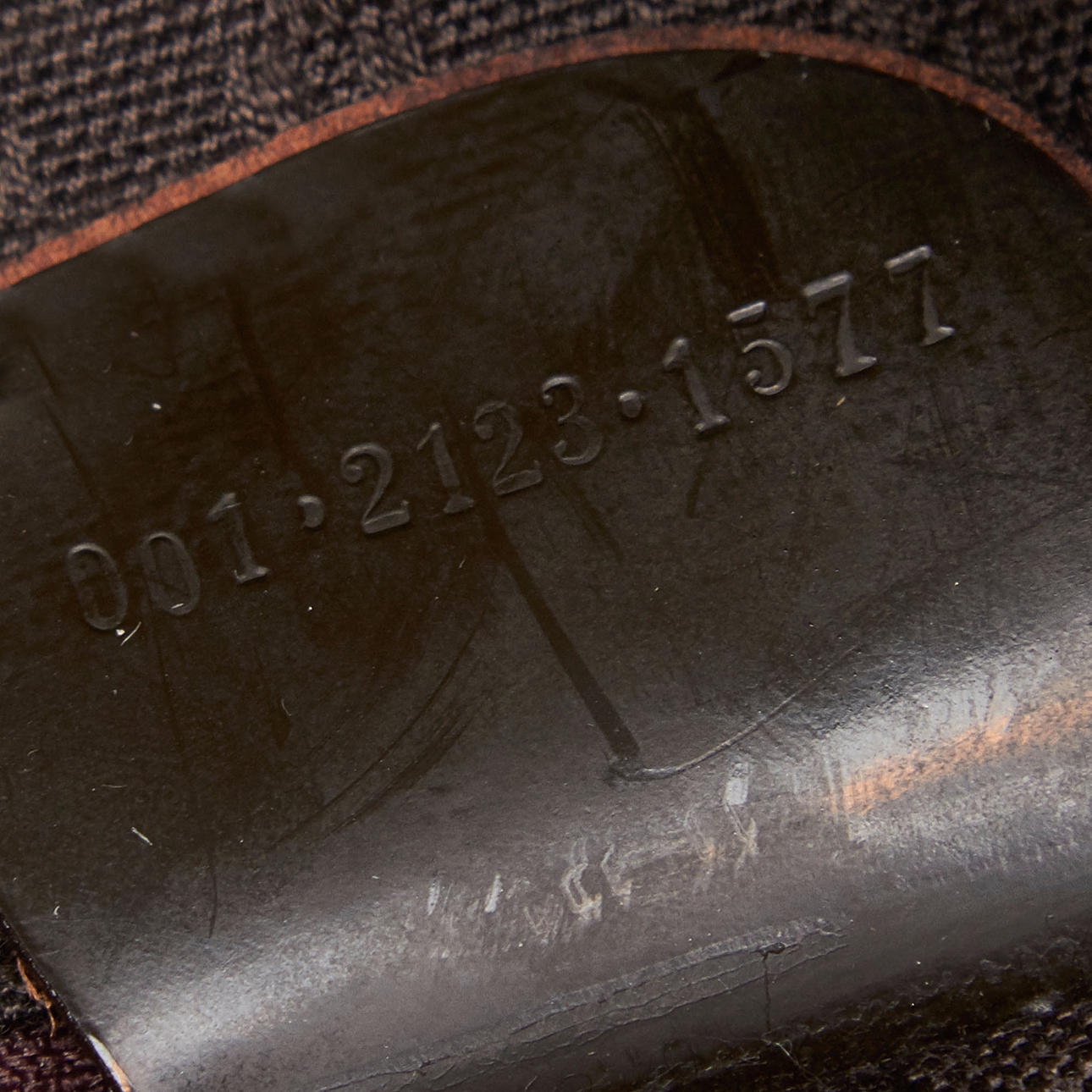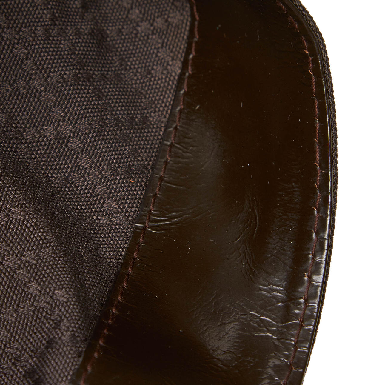Käyttökuluma. Jotain epäkunnossa. Pohjassa joitain naarmuja. Kahvassa halkeamia ja epäkunnossa. Vuorauksessa halkeamia ja naarmuja ja hieman hajua.