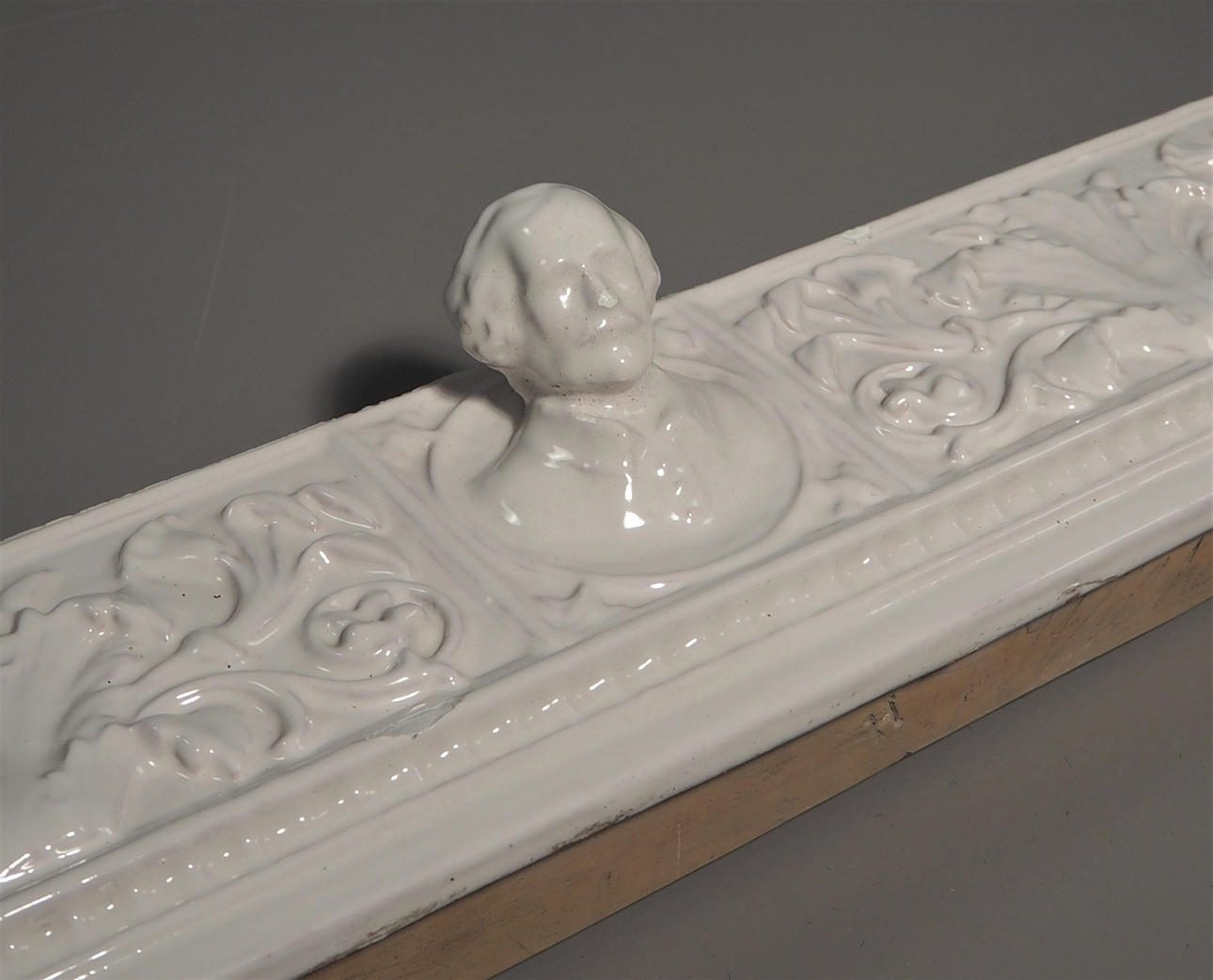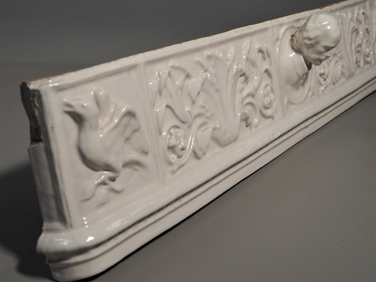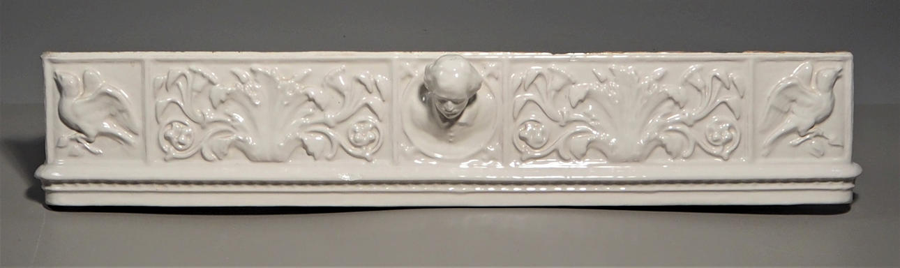 Valkoinen lasitettu. Pituus 87 cm, korkeus 16 cm.