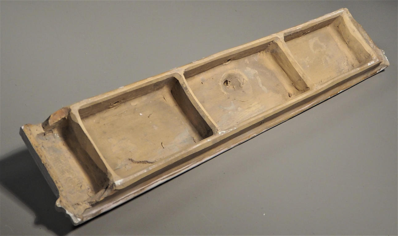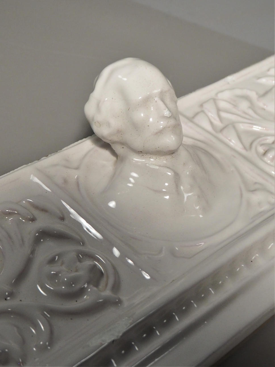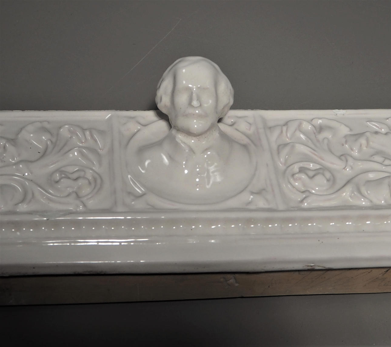 Valkoinen lasitettu. Pituus 87 cm, korkeus 16 cm.