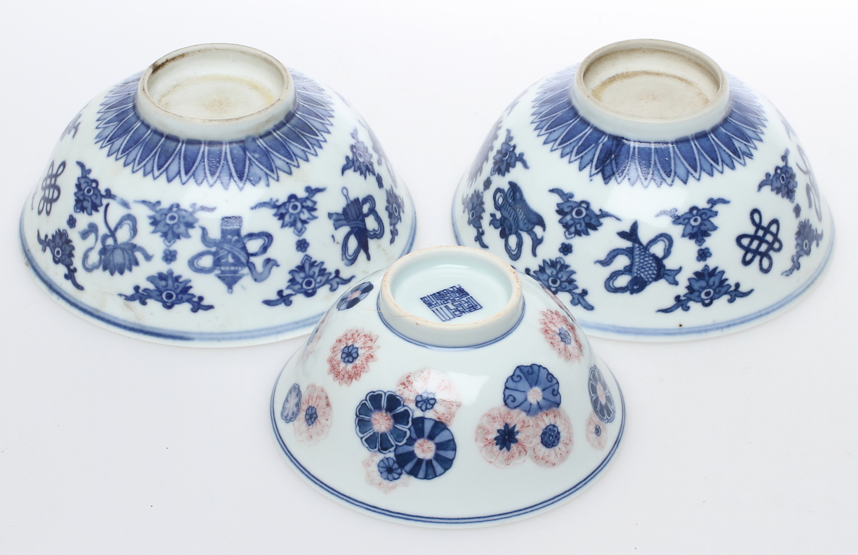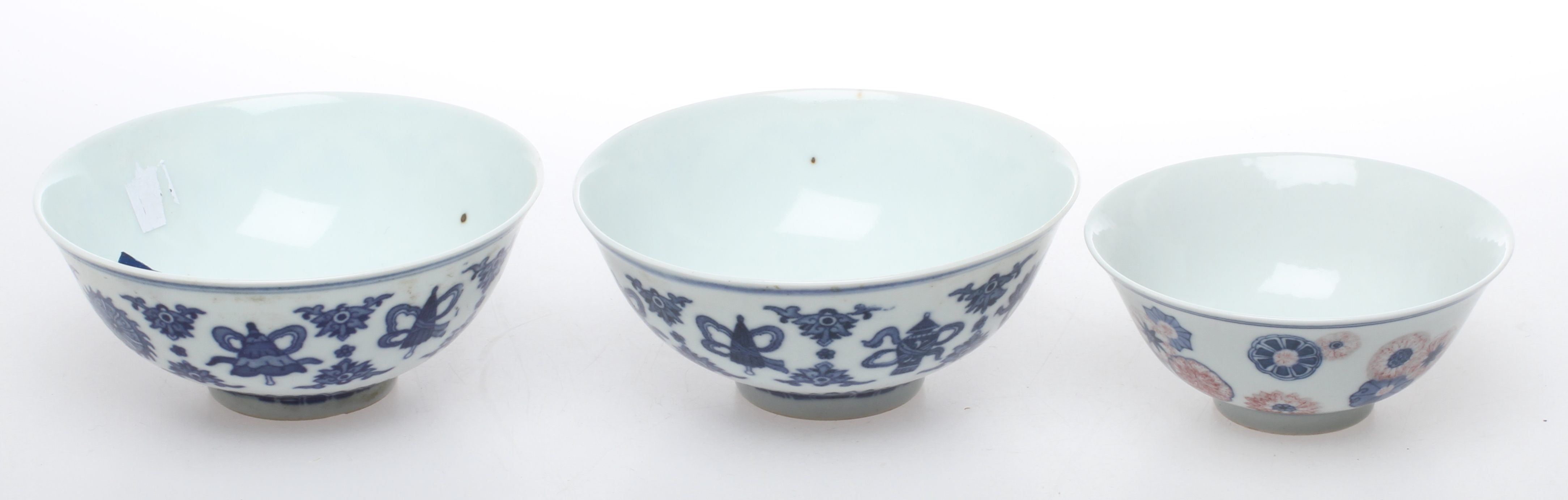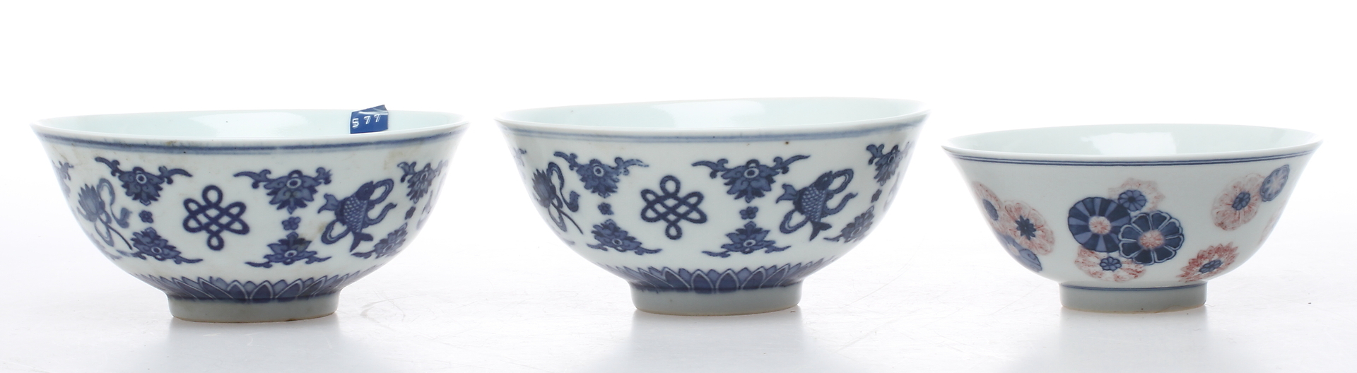139893. Kulhot; 3 kpl, posliini, Knia.