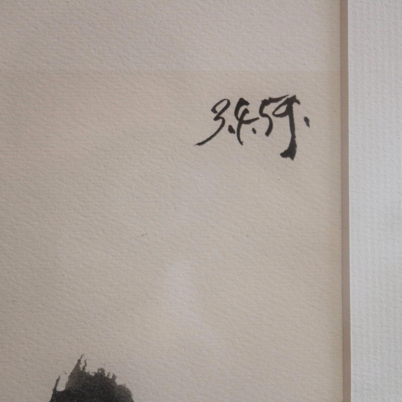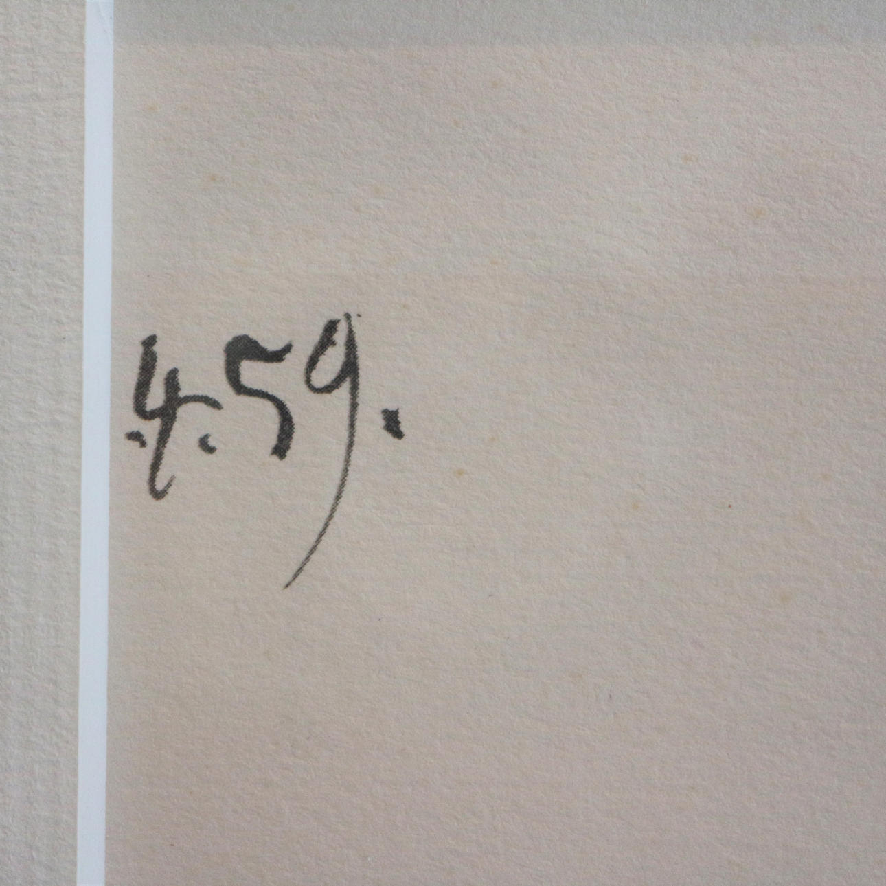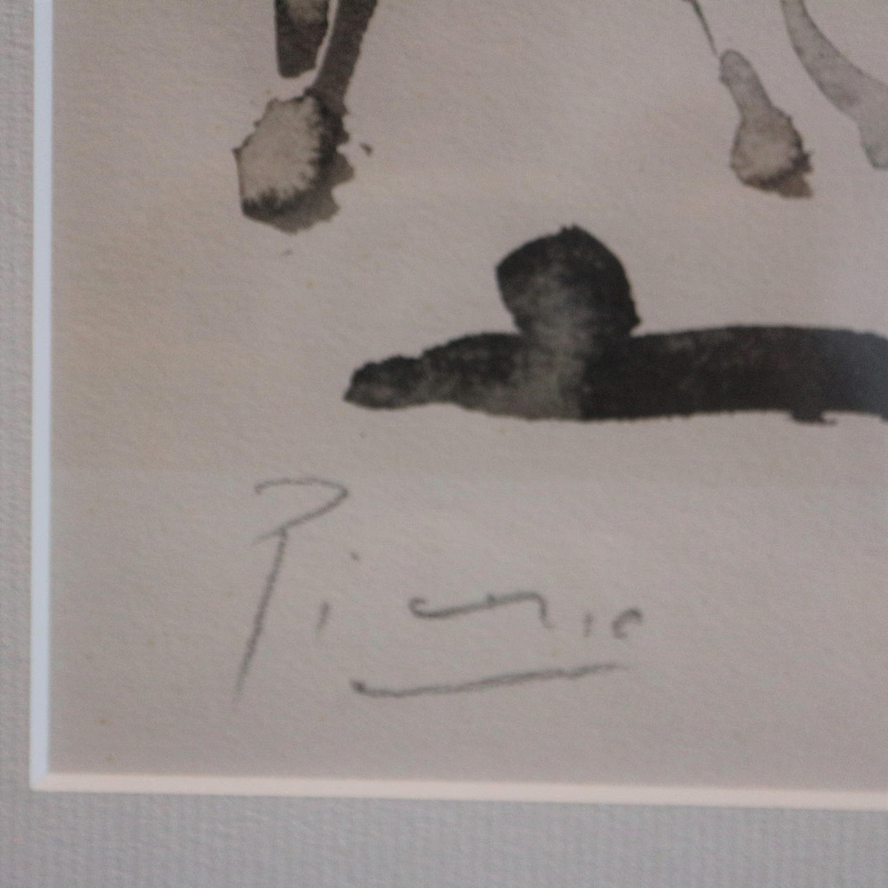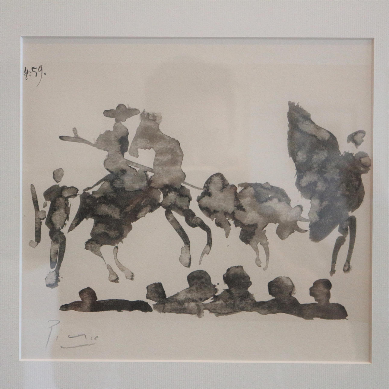 Kaksi Picasso-litografiaa, molemmin puolin kehystetty, (2 arkkia yhdessä kehyksessä), kuvan mitat: 26 x 24 cm, kehyksen mitat: 50 x 49 cm.