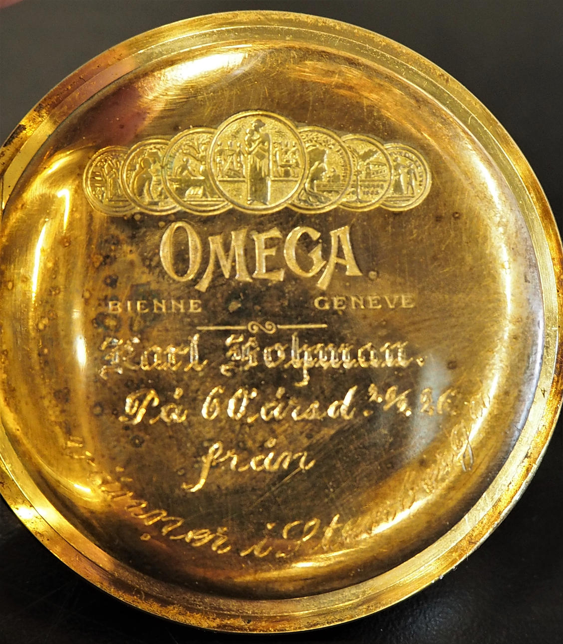 Halkaisija 5 cm. Sisäinen kaiverrus.