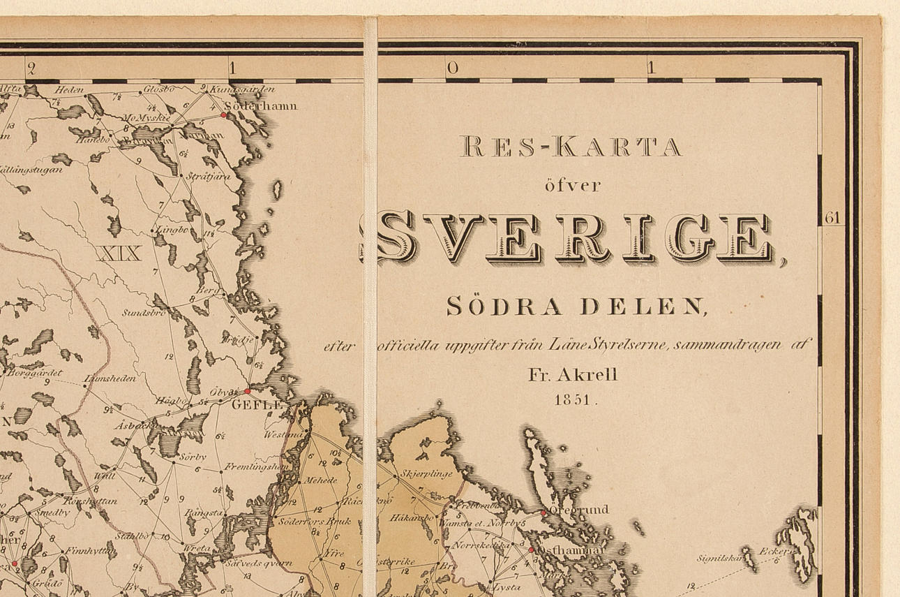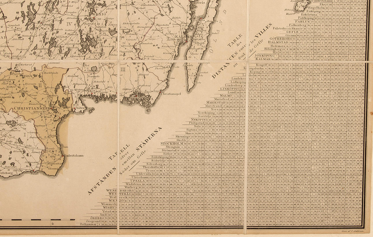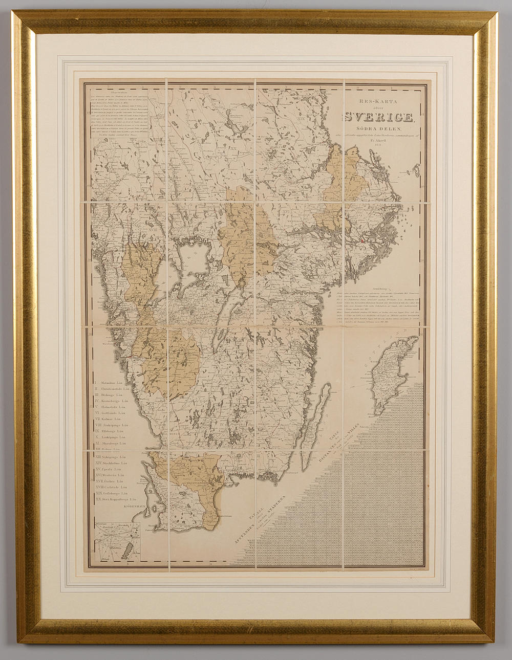 Ruotsin matkakartta, eteläosa, n. 74,5x52,5.