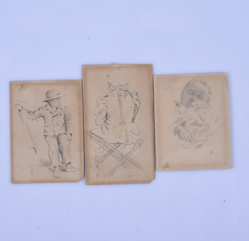 1502635. OIDENTIFIERAD KONSTNÄR. Lyijykynäpiirrokset, 3 kpl.