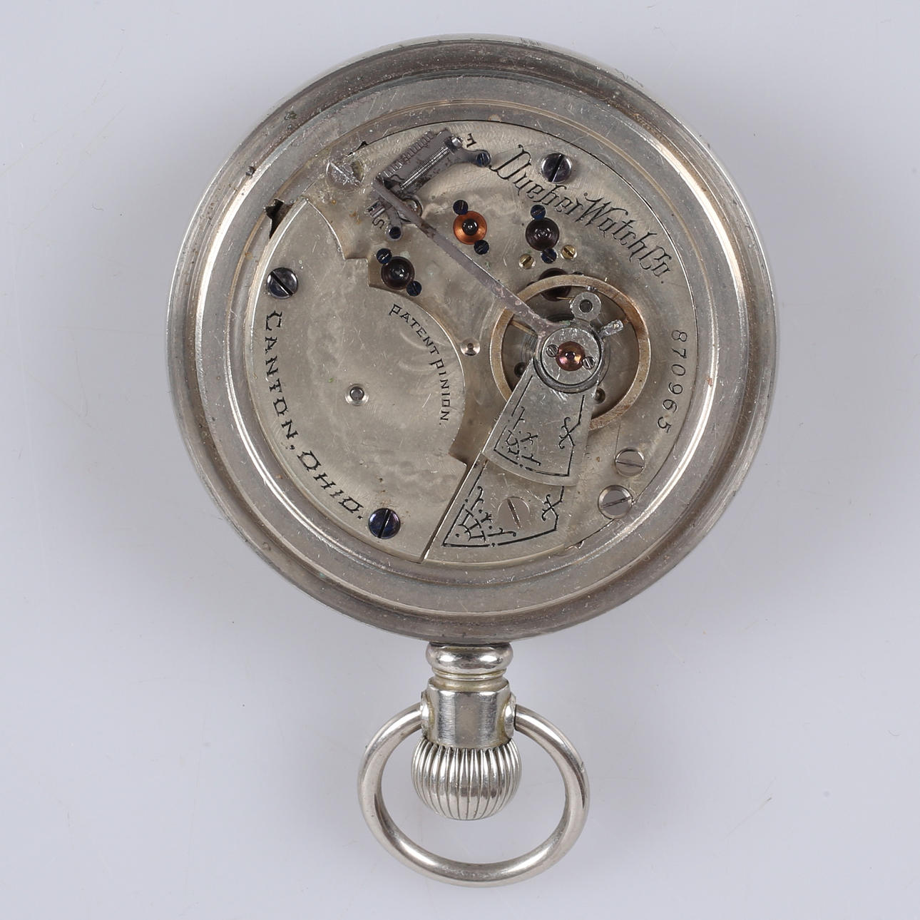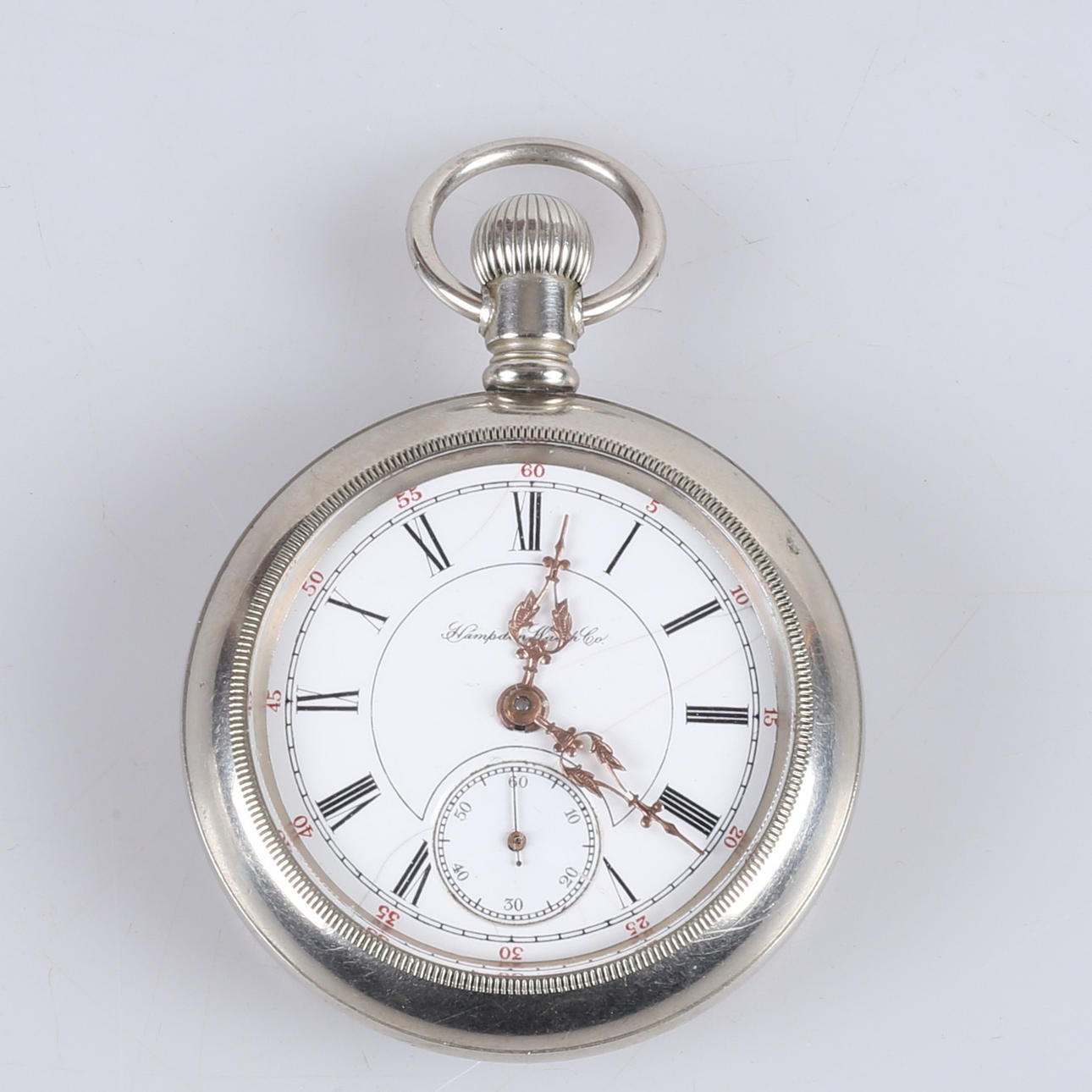Hamption Watch Co:n taskukello, valmistettu vuonna 1894 Kotelon halkaisija 59 mm Käsikäyttöinen.