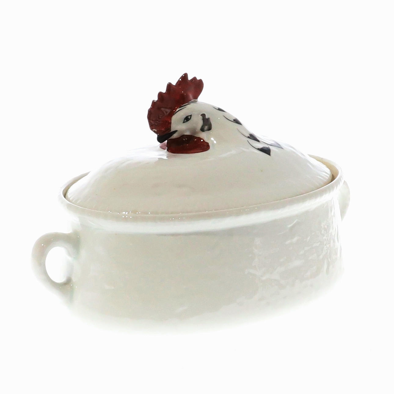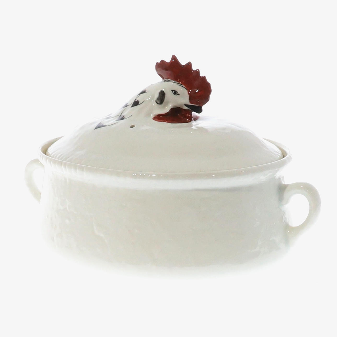 noin 1970-luvulla, luultavasti Apilcon tekemä kansi koristeli käsinmaalattua kukon päätä, maksimikorkeus 22cm x halkaisija 37cm.