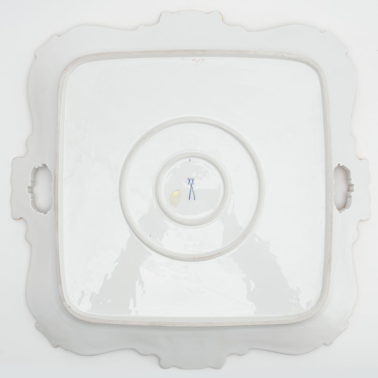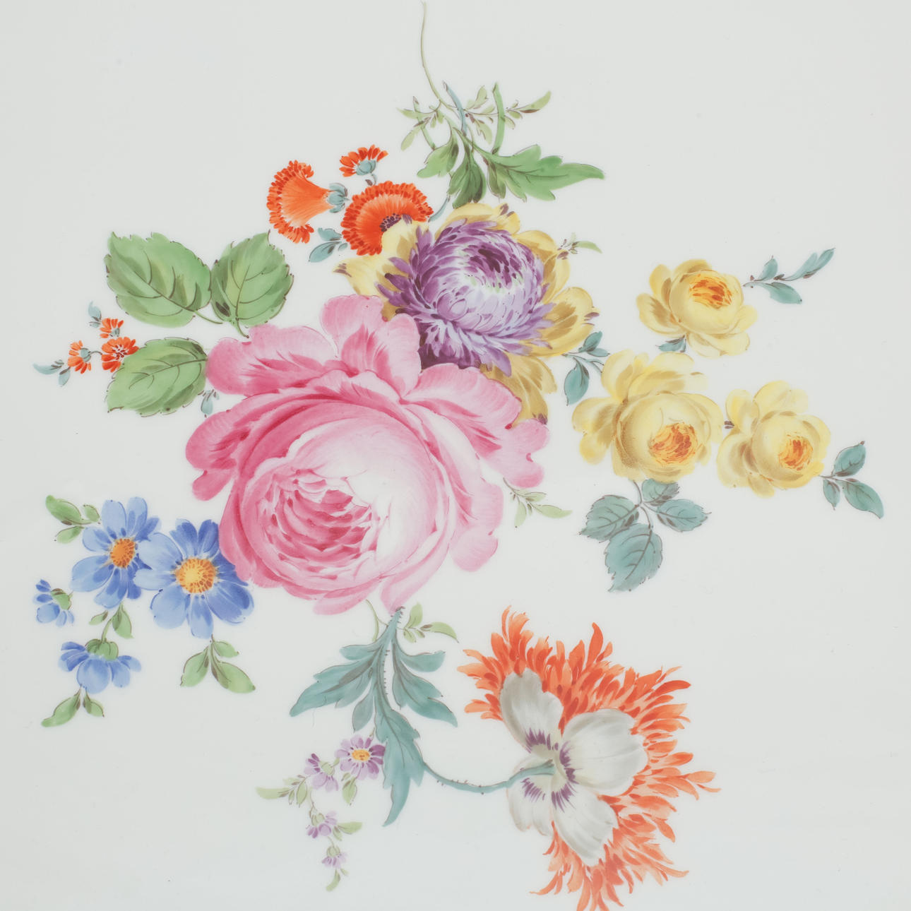 Monivärinen kukkamaalaus ja kultaiset reunat. 40 x 40 cm.