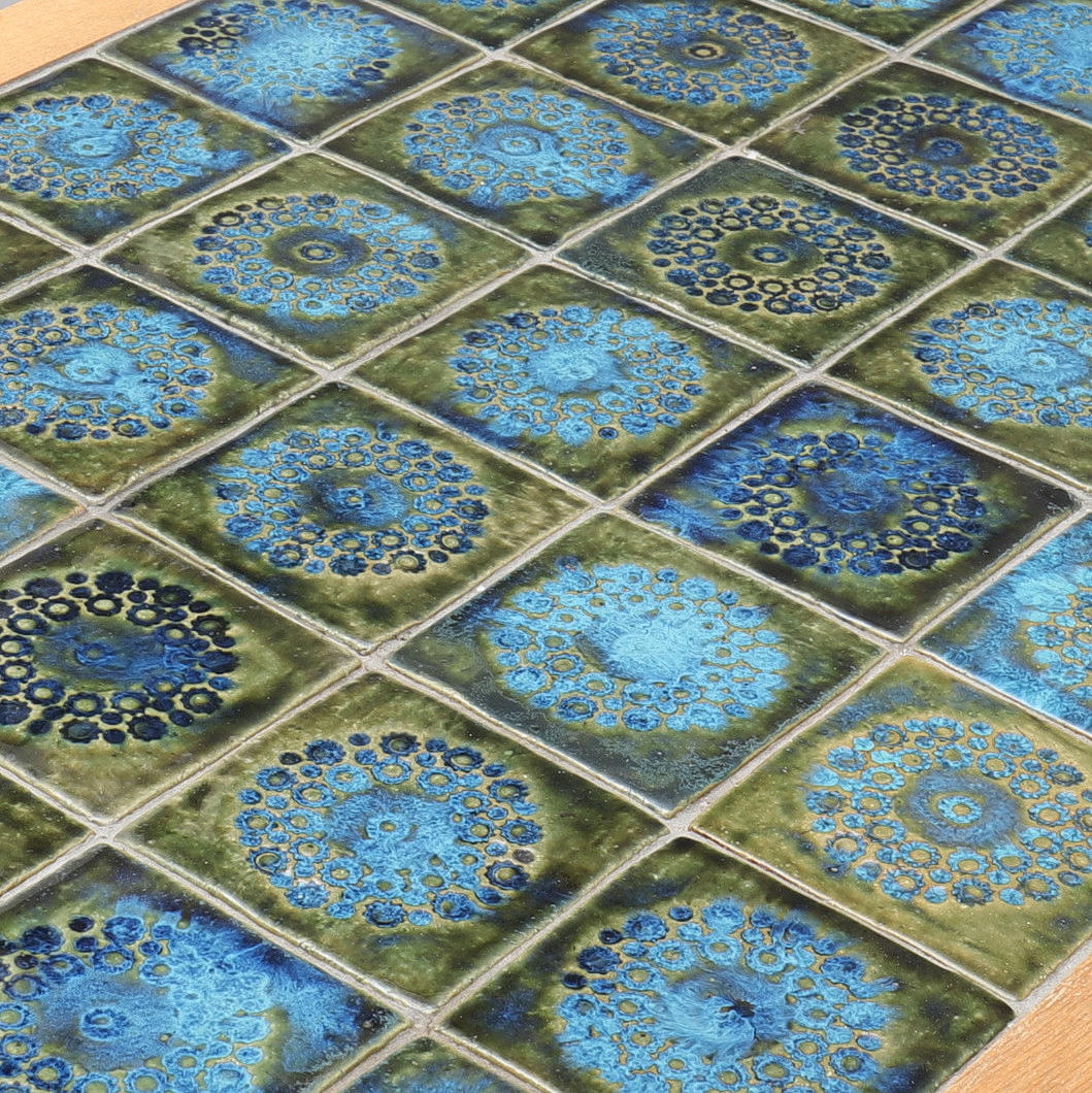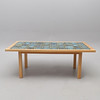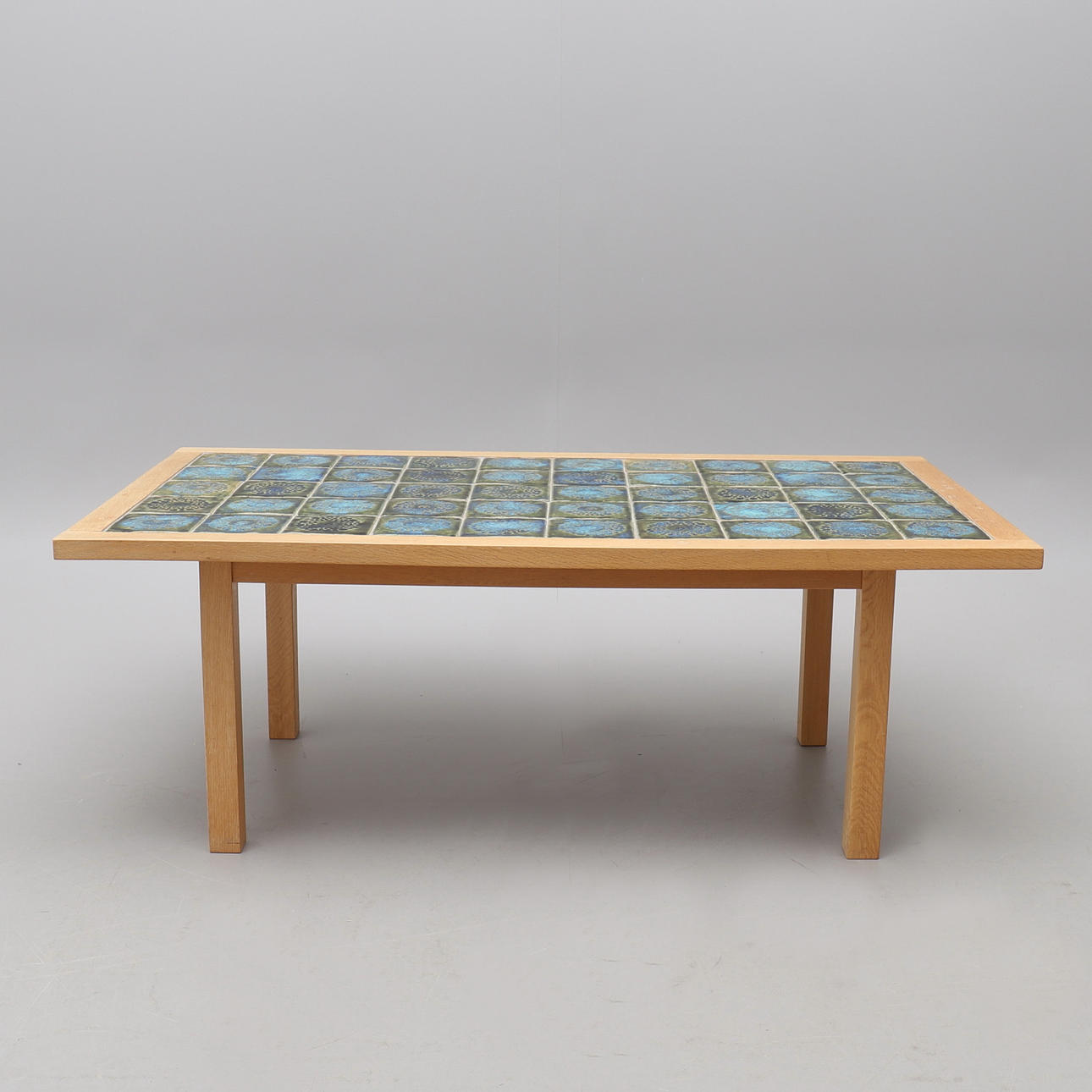 Runko tammea, pöytälevy laatoilla, pituus 153 cm, leveys 83 cm, korkeus 57 cm.