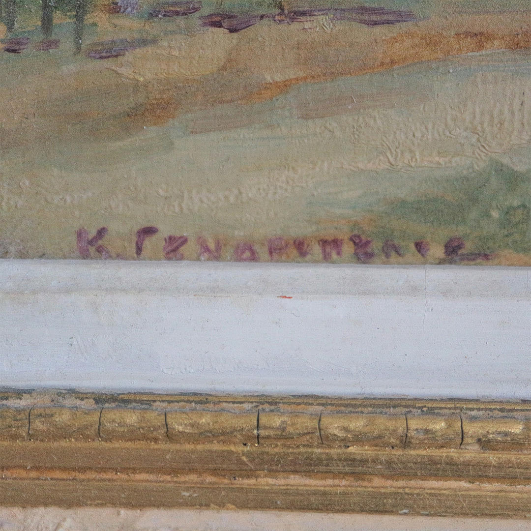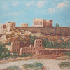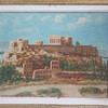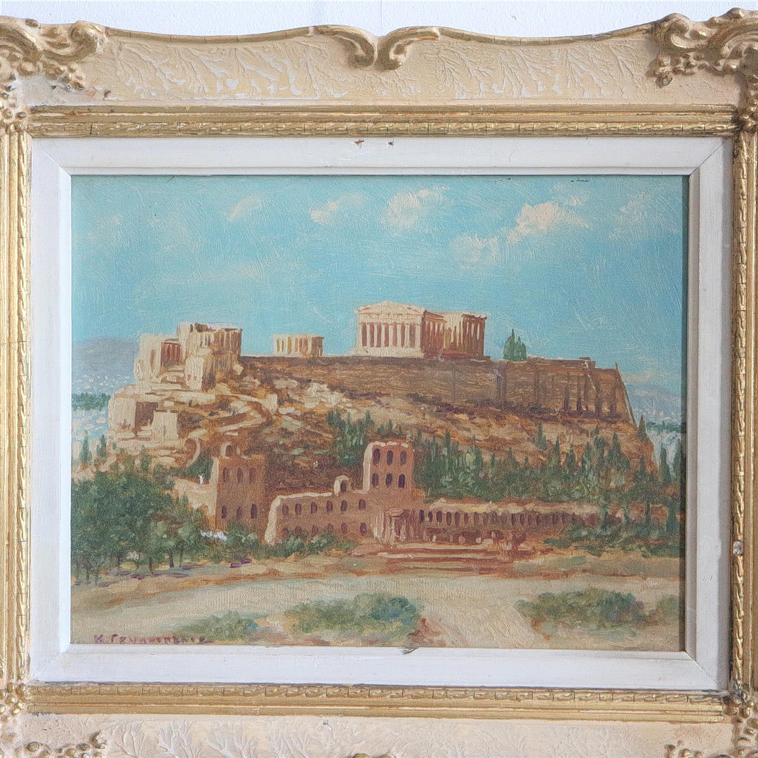 Öljy kankaalle, Ateenan akropolis, lukemattomasti signeerattu, kehystetty, kuvan mitat: 26 x 20, kehyksen mitat: 35 x 29 cm.