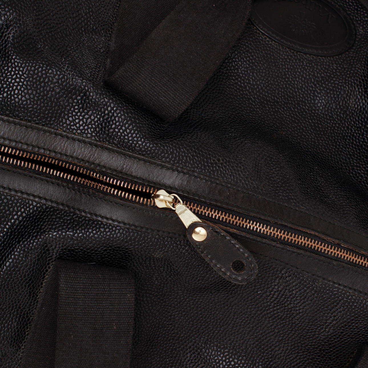 Mustaa skotlantilaista puuta, yksityiskohdat ja tarvikkeet keltaista metallia. Noin 55x34x23 cm. Yhdessä kulmassa kovempaa kulumaa. Merkki: Mulberry Fabriqué en Angleterre.