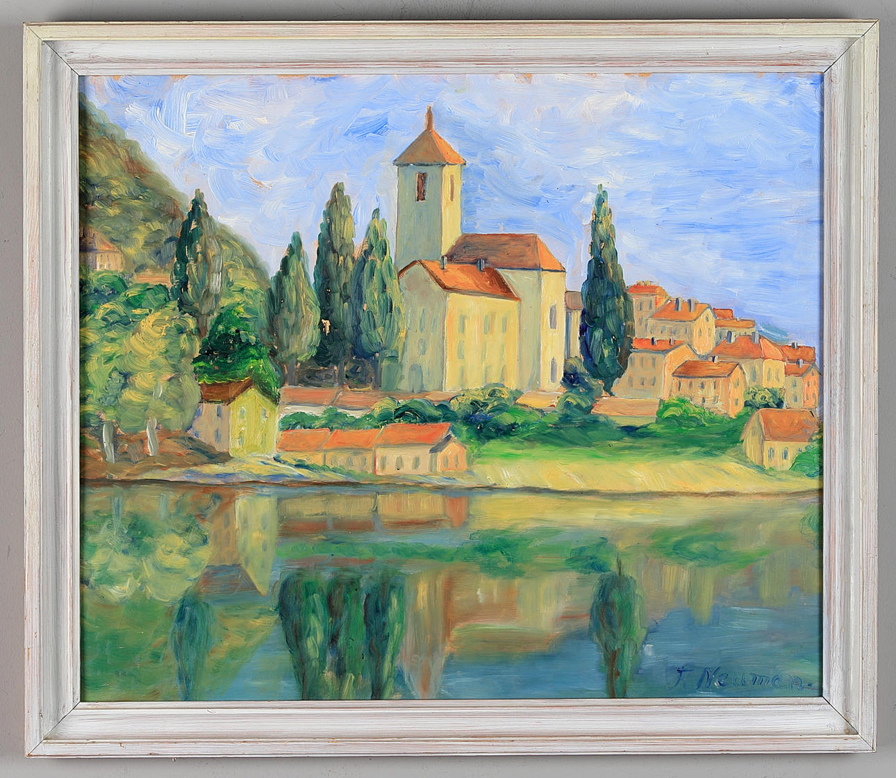 Eteläkylä, signeerattu, öljy levylle, Paneeli.