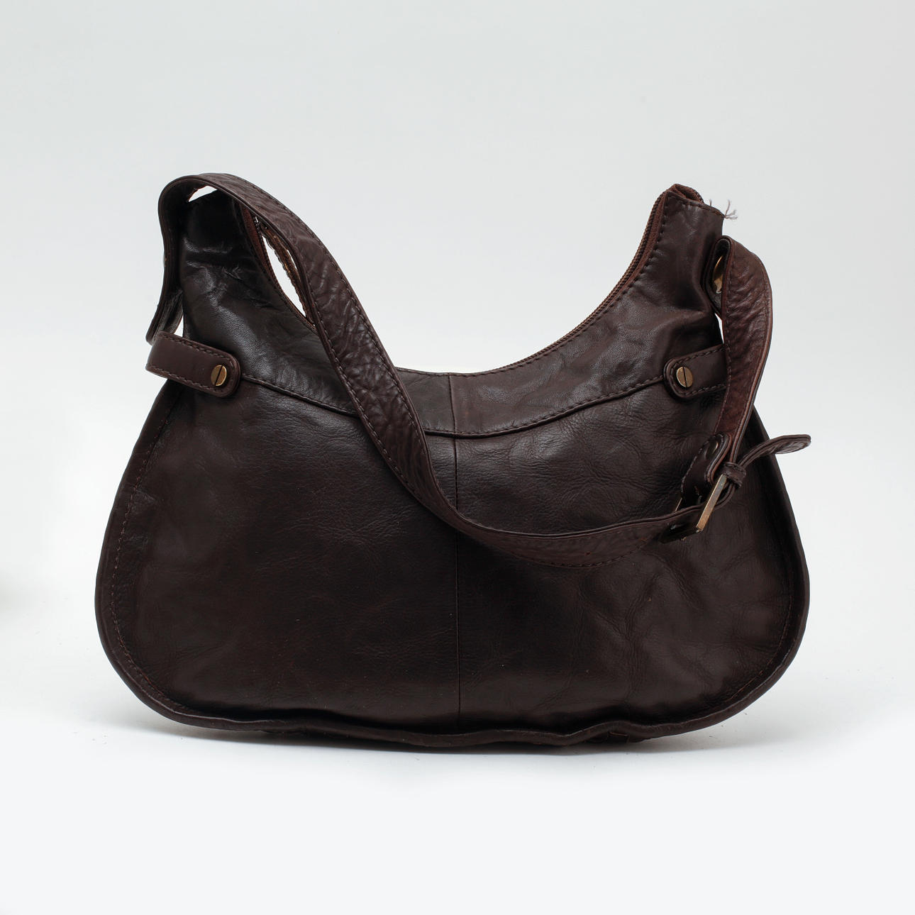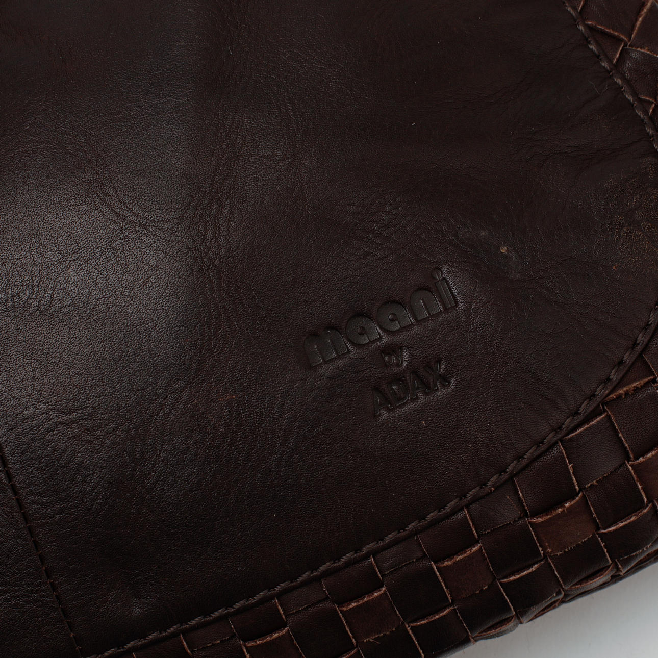 Ruskeaa nahkaa, jossa punotut nahkayksityiskohdat. Vuorattu. Merkki: Maani by Adax.